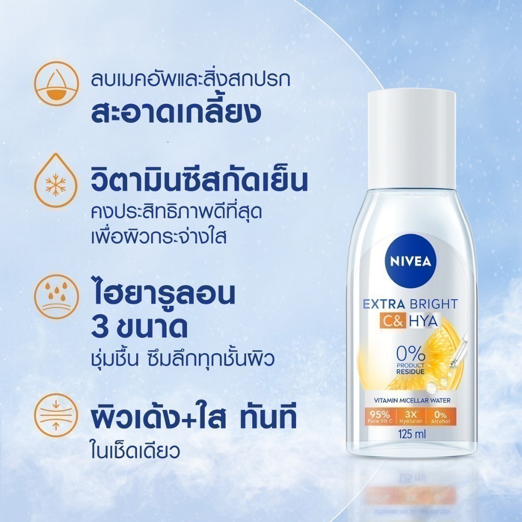 นีเวีย เอ็กซ์ตร้า ไบรท์ ซี แอนด์ ไฮยา วิตามิน ไมเซล่า 125 มล. 2ชิ้น NIVEA