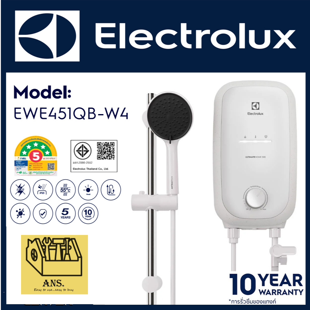 เครื่องทำน้ำอุ่นรุ่น UltimateHome 500 แท็งก์น้ำ ComfortFlow กำลังไฟ 4500 w ยี่ห้อ Electrolux รุ่น EWE451QX-W4