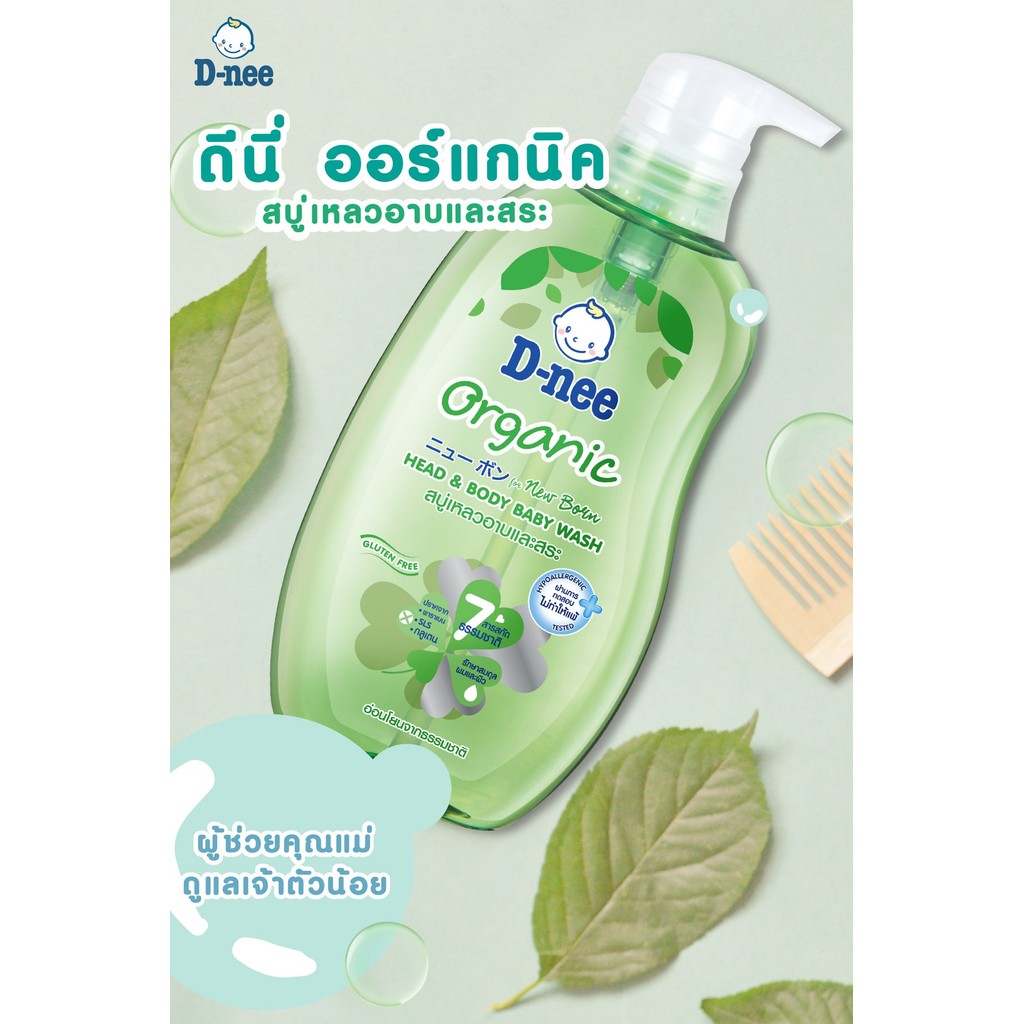 แพค 3 ขวดใหญ่ สบู่เหลวอาบสระเด็กแรกเกิด ดีนี่ ออร์แกนิค 750ml 3 ขวด สบู่เหลวอาบน้ำนิวบรอน D-nee สีเขียว