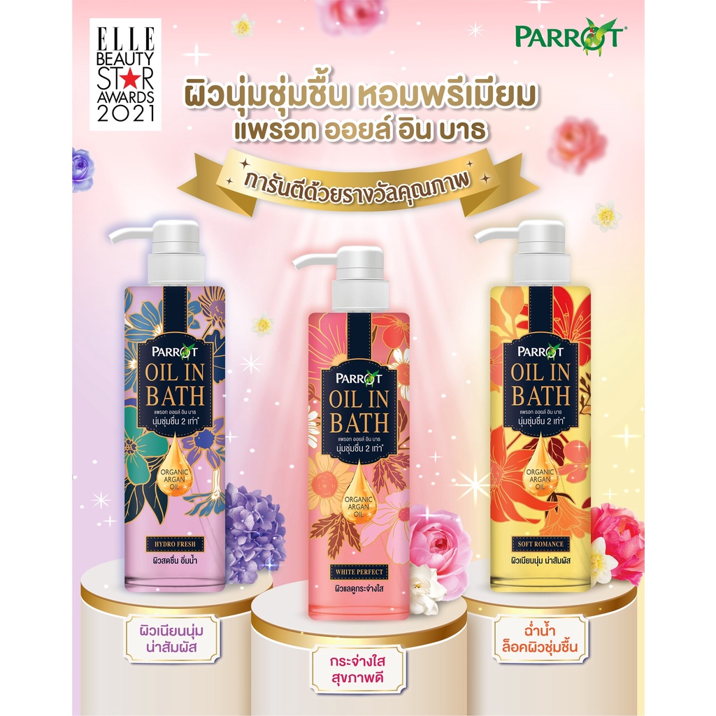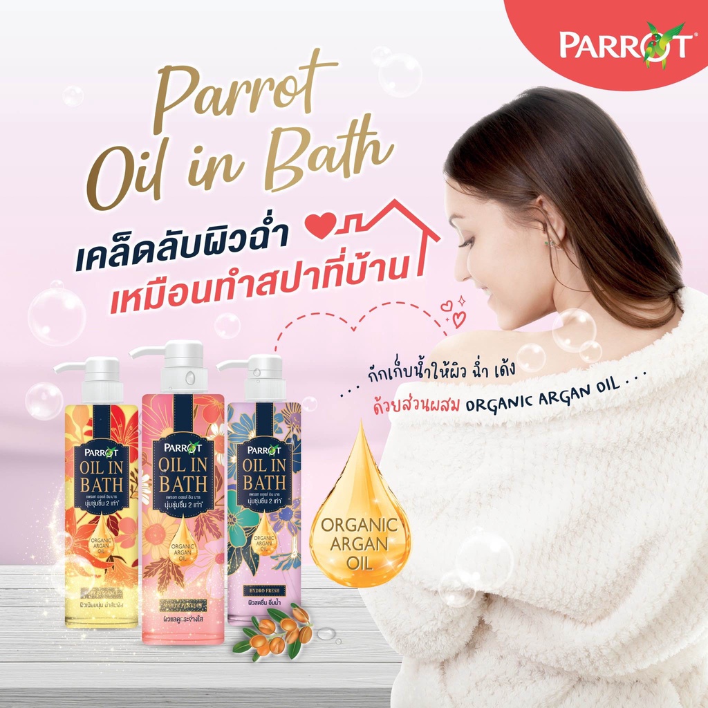 Parrot Oil in Bath แพรอท ออยล์ อิน บาธ 400 มล. ครีมอาบน้ำ เพื่อผิวนุ่ม ชุ่มชื่น กลิ่นหอมหรู แบบฝรั่งเศส