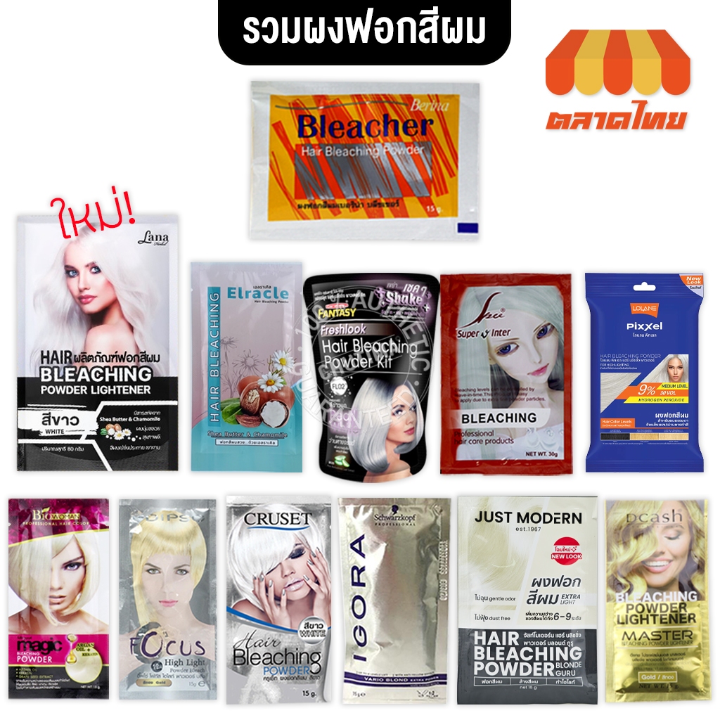 ฟอกสีผม กัดสีผม เปลี่ยนสีผม สีสว่าง "รวมที่นี่ที่เดียว 12 ยี่ห้อ" ผงกัด ผงฟอก