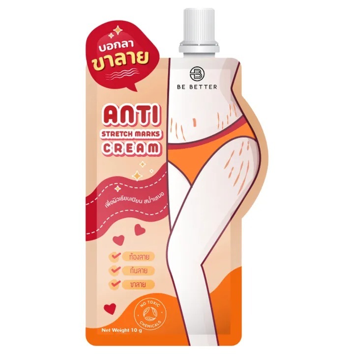 ถูก/แท้/มีไลฟ์ (ซอง) ครีม Be Better Anti Stretch Marks Cream ครีมลดรอยแตกลาย ลดรอยก้นลาย ขาลาย แขนลาย ท้องลาย รอยแตก