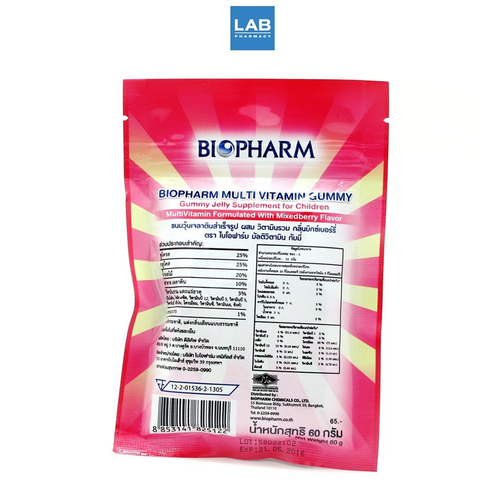 BIOPHARM Multivitamin Gummy 60 g. - ไบโอฟาร์ม มัลติวิตามิน กัมมี่ เยลลี่ผสมวิตามินรวม
