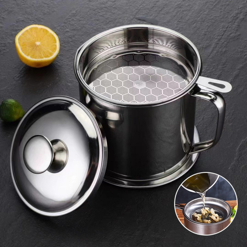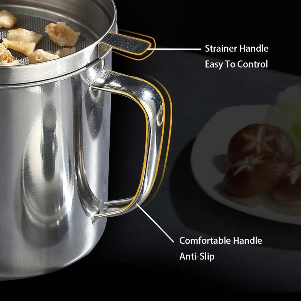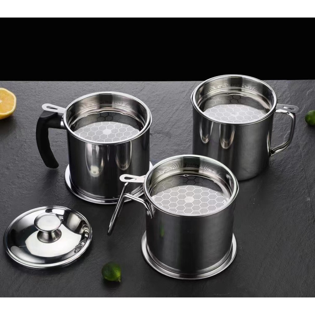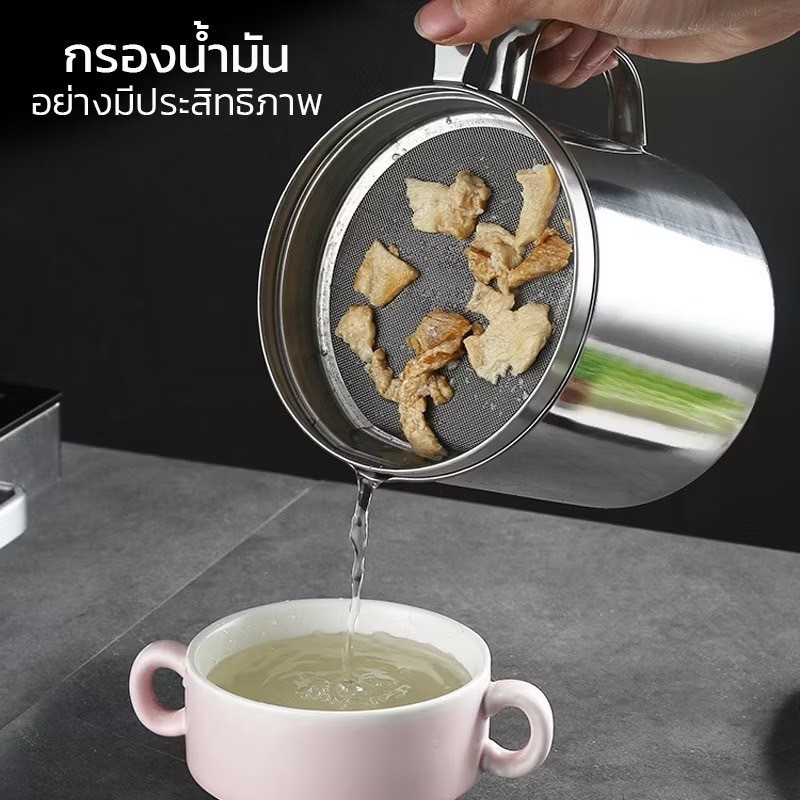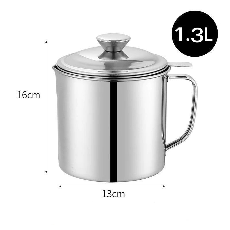 ถ้วยกรองน้ำมัน หม้อกรองน้ำมัน หม้อกรอง โถใส่น้ำมันสไตล ์ญี่ปุ่น ทนความร้อน 12 ซม สแตนเลส ความจุ 1.3 ลิตร