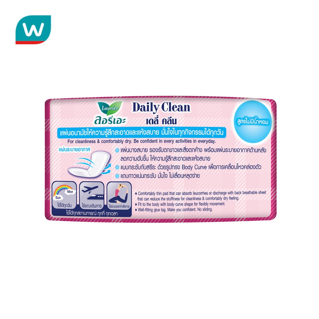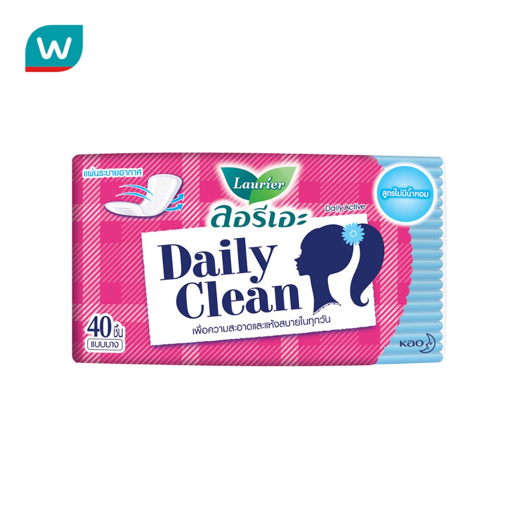 Laurier ลอริเอะ แผ่นอนามัย เดลี่ แอคทีฟ เนเจอรัล คลีน ไม่มีน้ำหอม 14 ซม. 40 ชิ้น