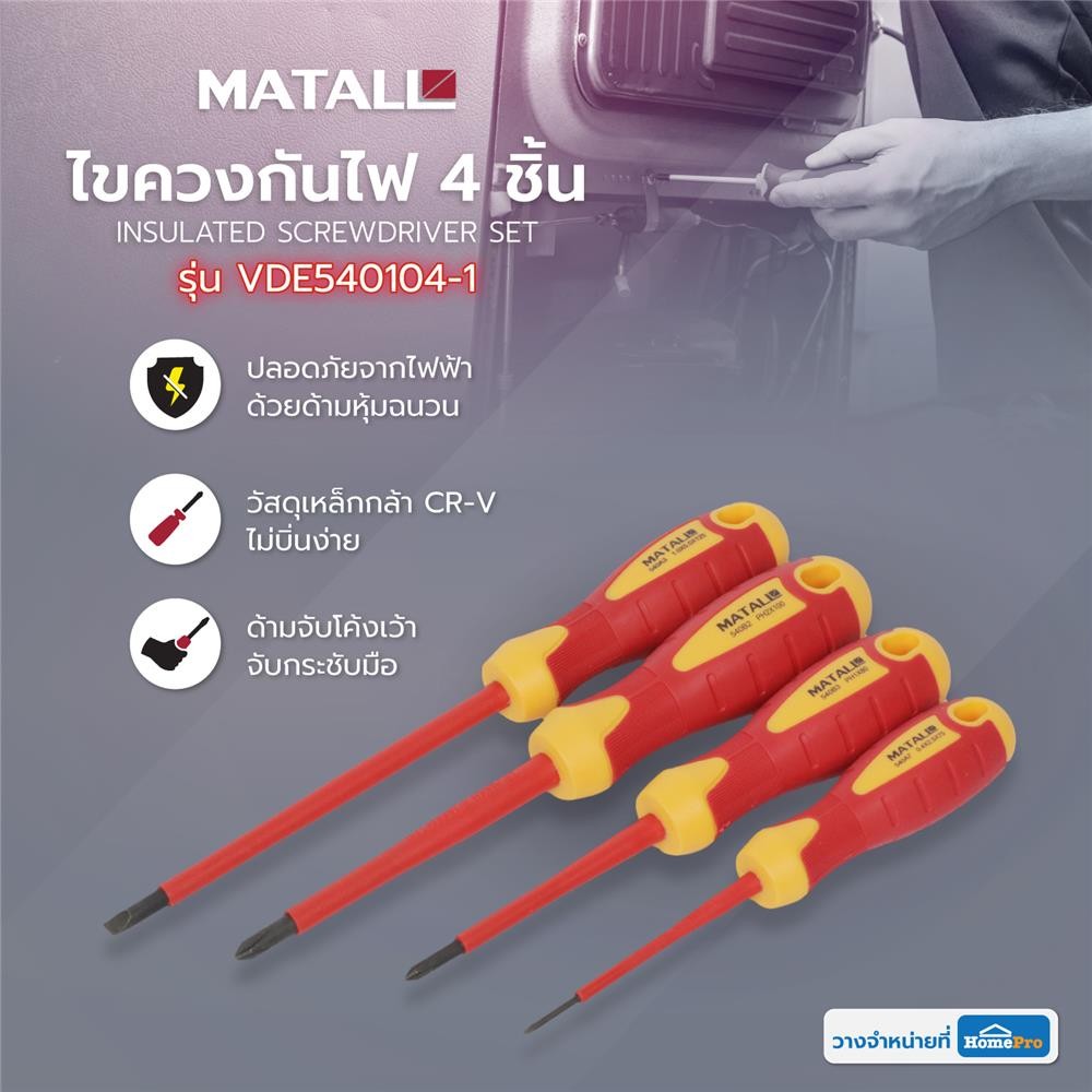 MATALL ชุดไขควงกันไฟ VDE540104-1 4 ชิ้น จัดส่งโดย HomePro