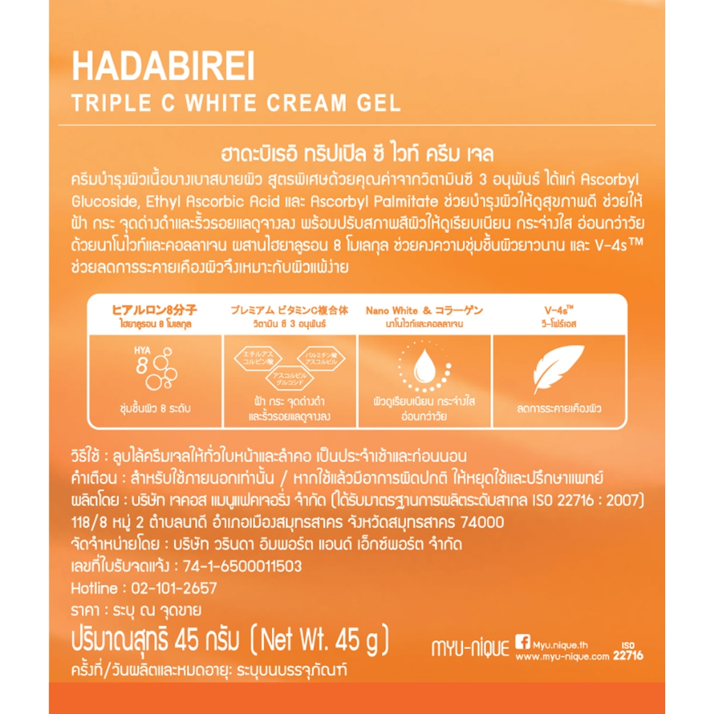 HADABIREI TRIPLE C WHITE CREAM GEL ฮาดะบิเรอิ ทริปเปิล ซี ไวท์ ครีม เจล 45กรัม