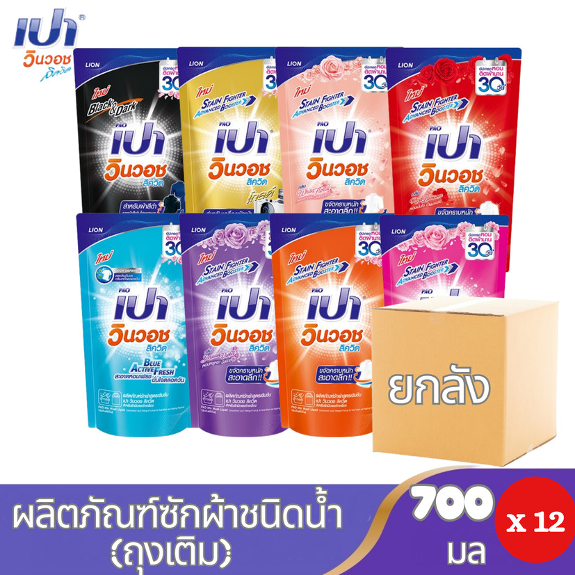 ยกลังสุดคุ้ม เปา ผลิตภัณฑ์ซักผ้าสูตรน้ำ เปา วินวอช ชนิดถุงเติม มี 8 กล่นให้เลือก