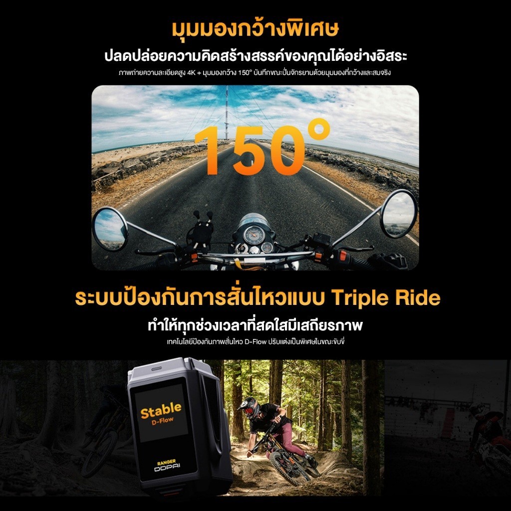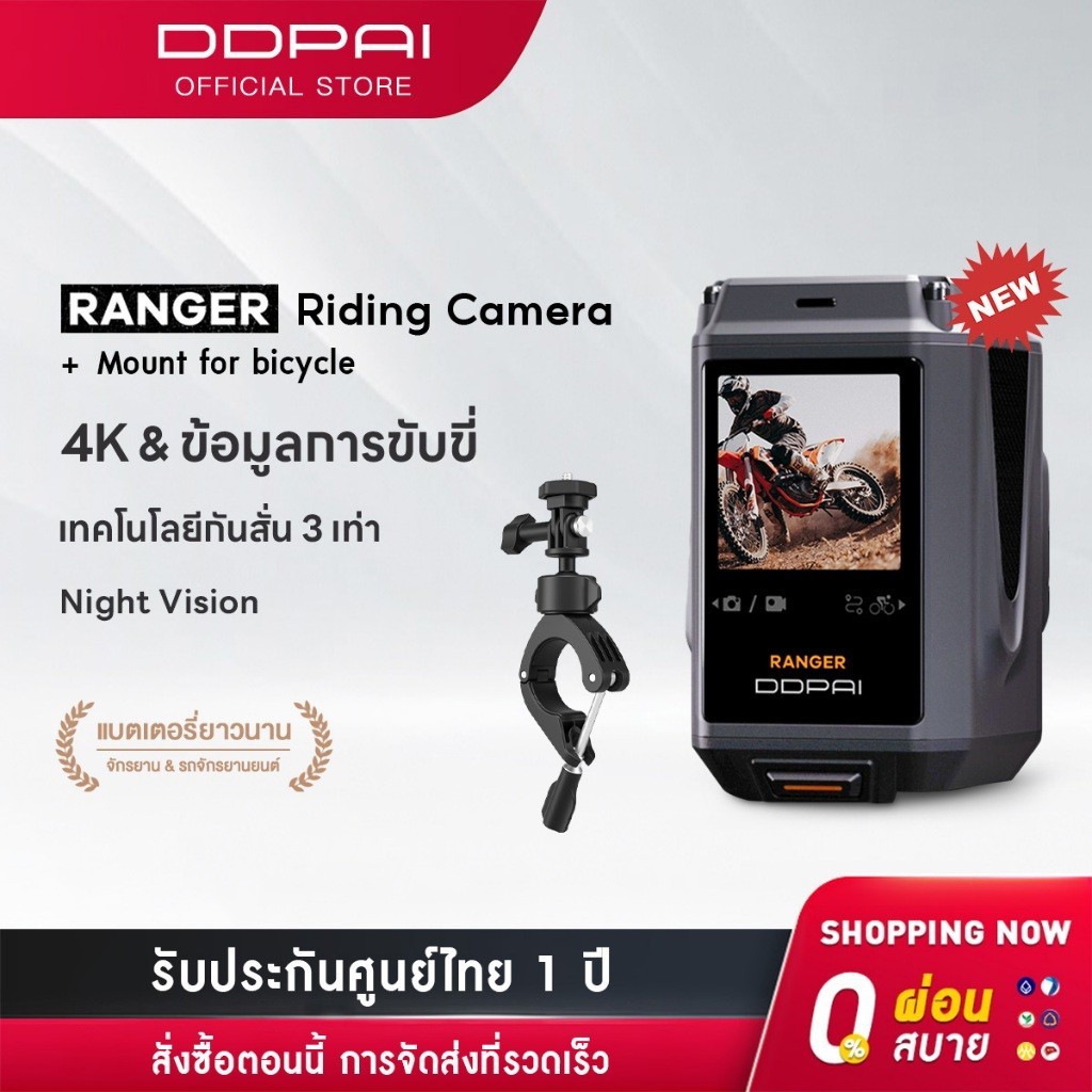 DDPAI RANGER Riding Camera กล้องขี่ 4K HD กล้องแอคชั่น กล้องติดรถยนต์ กันน้ํา สําหรับมอเตอร์ไซด์และจักรยาน ประกัน 1 ปี