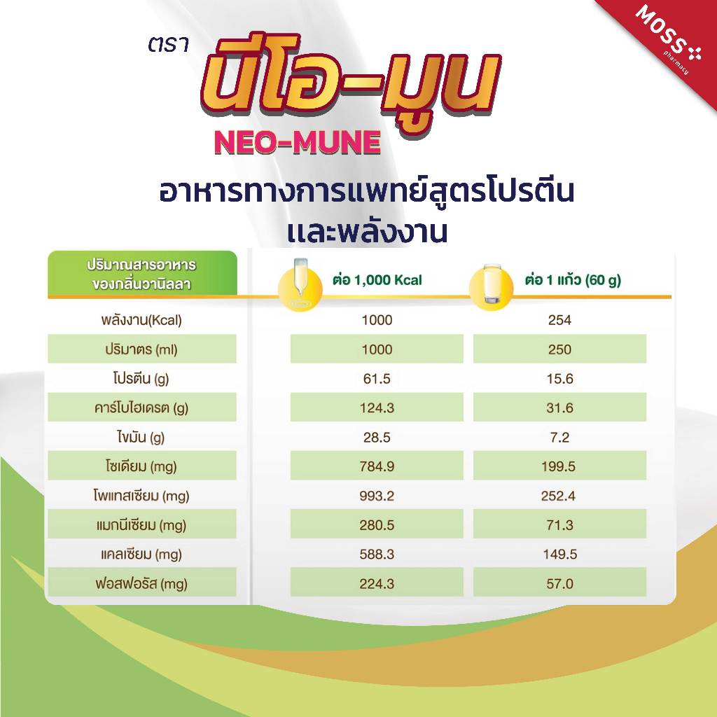 NEO-MUNE VANILLA (นีโอ-มูน) กลิ่นวานิลลา อาหารทางการแพทย์ สำหรับผู้ที่ต้องการโปรตีนและพลังงานสูง ปริมาณ 400 กรัม