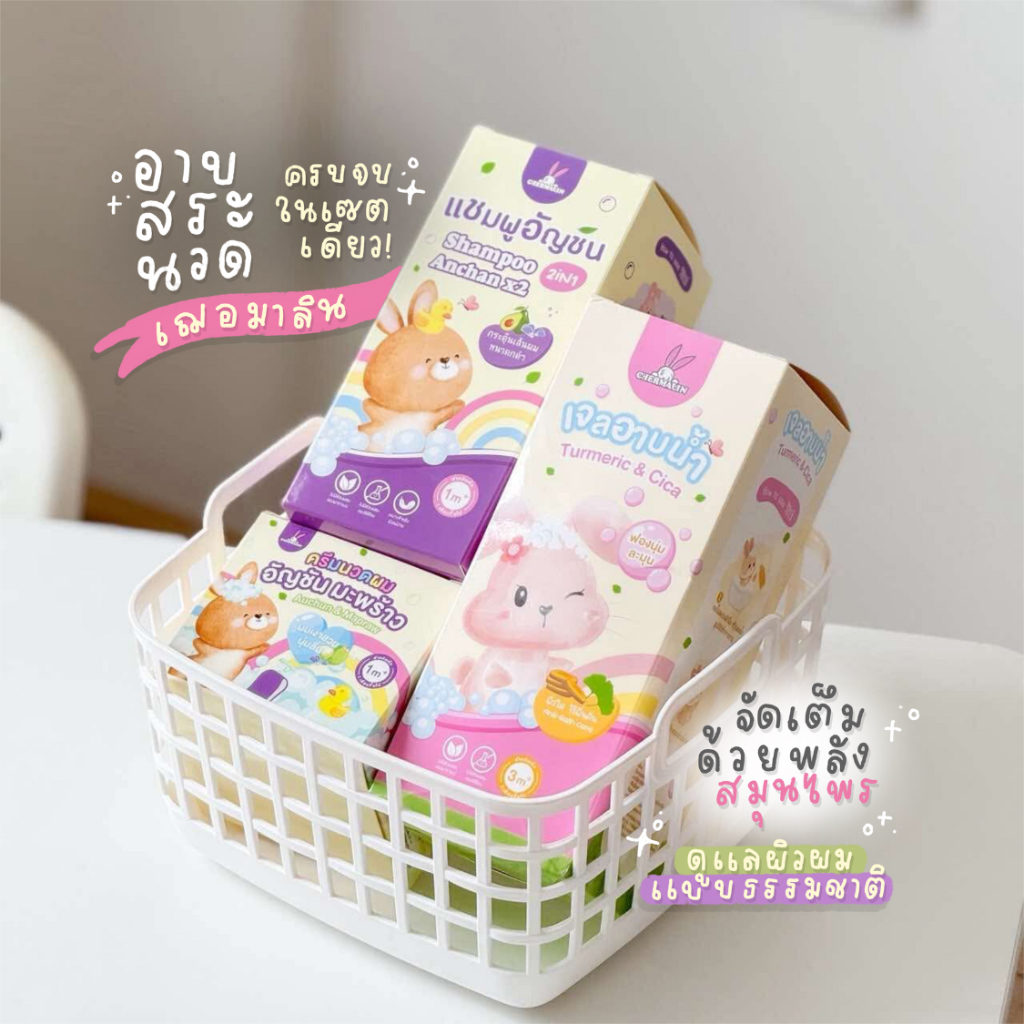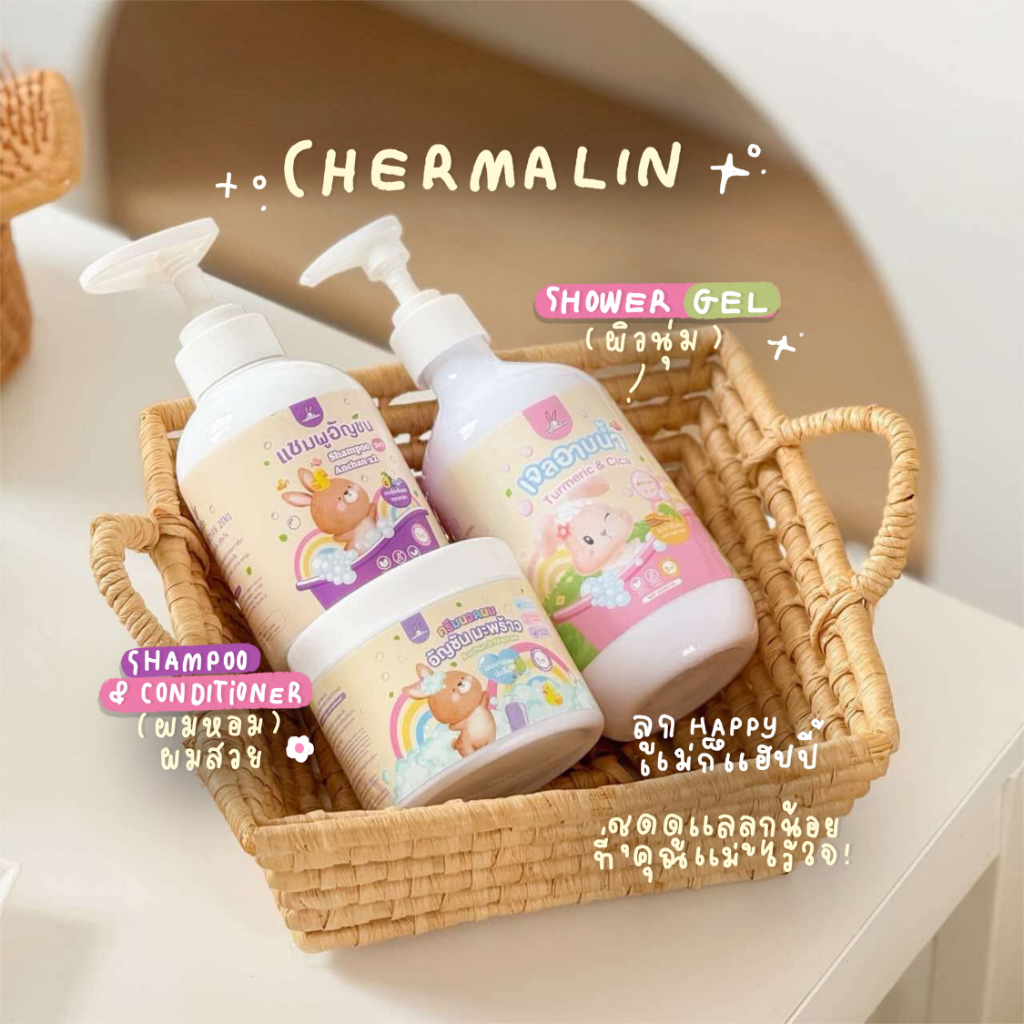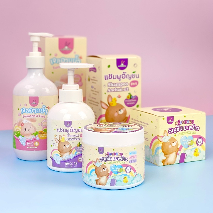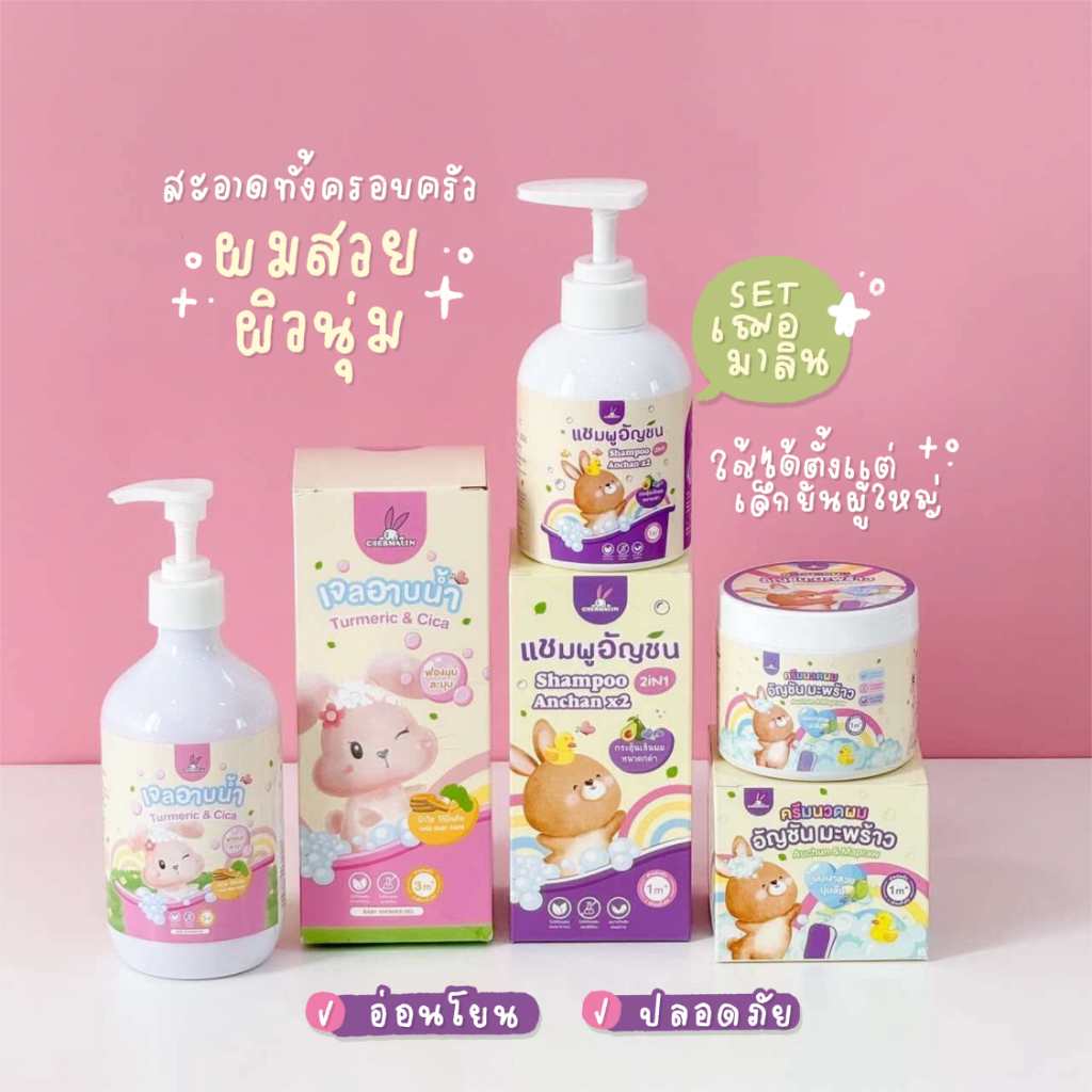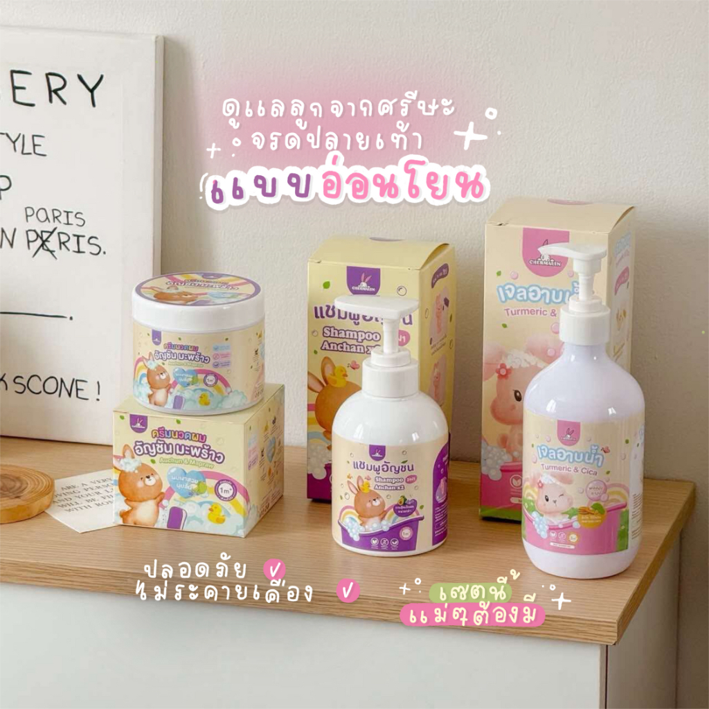 โปร 3 ชิ้น - เจลอาบน้ำเด็กขมิ้นใบบัวบก 450ml.+แชมพูเด็กอัญชันอโวคาโด 250ml.+ครีมนวดเด็กอัญชันมะพร้าว 300ml.