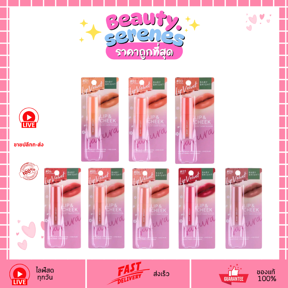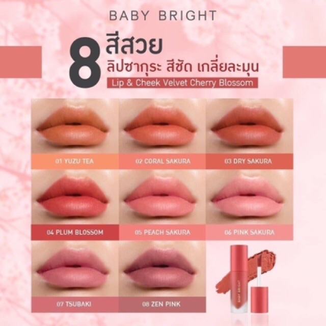 ลิปชีคเวลเวทเชอรี่บลอสซั่ม เบบี้ไบร์ท Baby Bright LIP & CHEEK VELVET CHERRY BLOSSOM ขนาด 2.4G