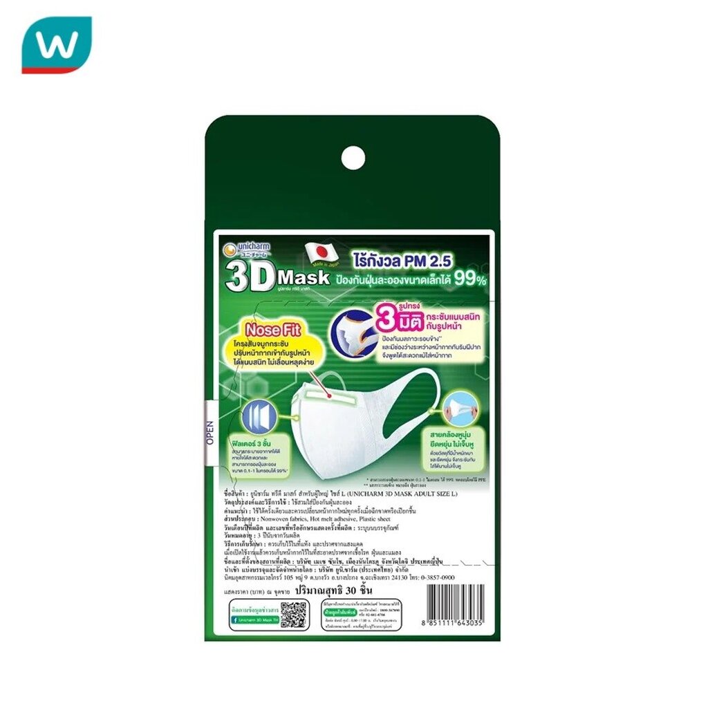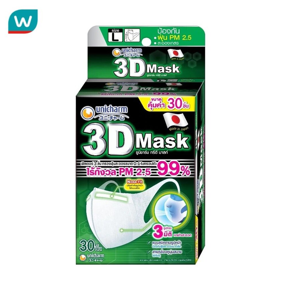 Unicharm ยูนิชาร์ม ทรีดี มาสก์ หน้ากากอนามัย สำหรับผู้ใหญ่ ขนาด L 30 ชิ้น