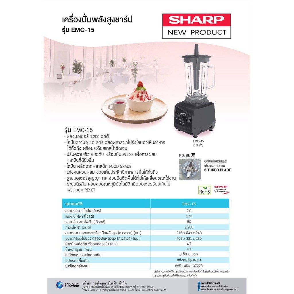 SHARP เครื่องปั่นทรงพลัง EMC-15 (1200W, 2L)