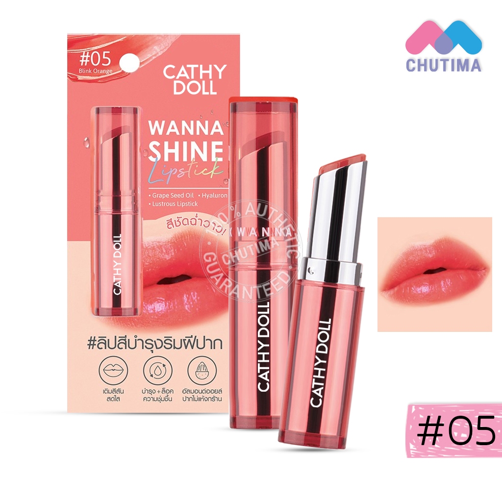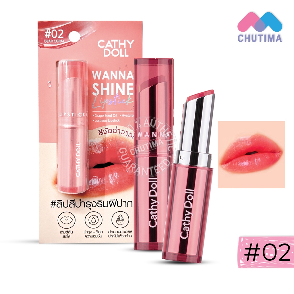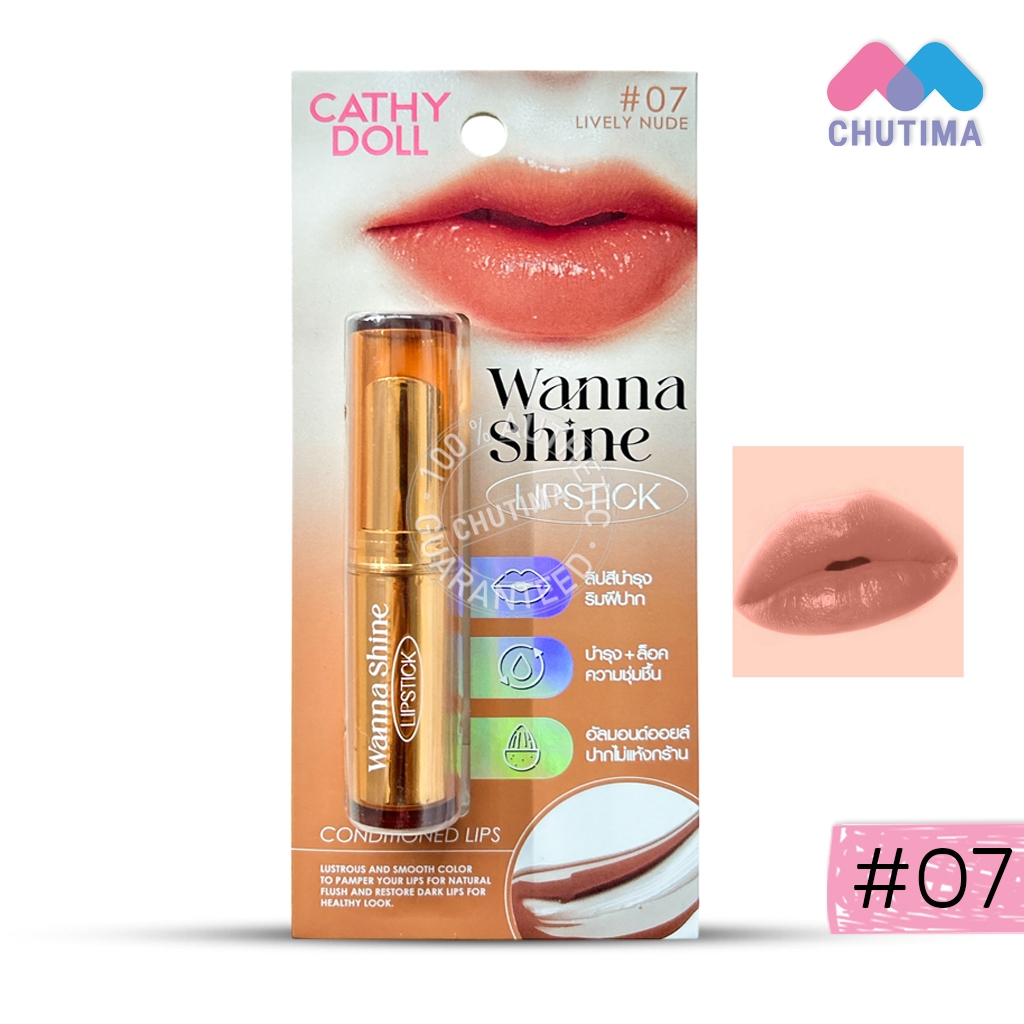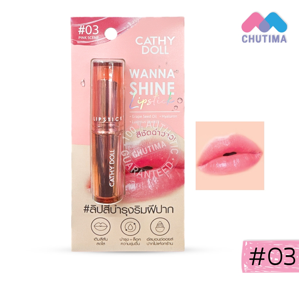 เคที่ดอลล์ วันนาไชน์ ลิปสติก ลิปสีบำรุงริมฝีปาก ลิปสติกเนื้อวาว CATHY DOLL Wanna Shine Lipstick 3g.