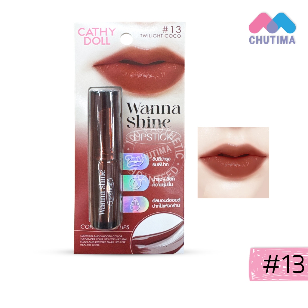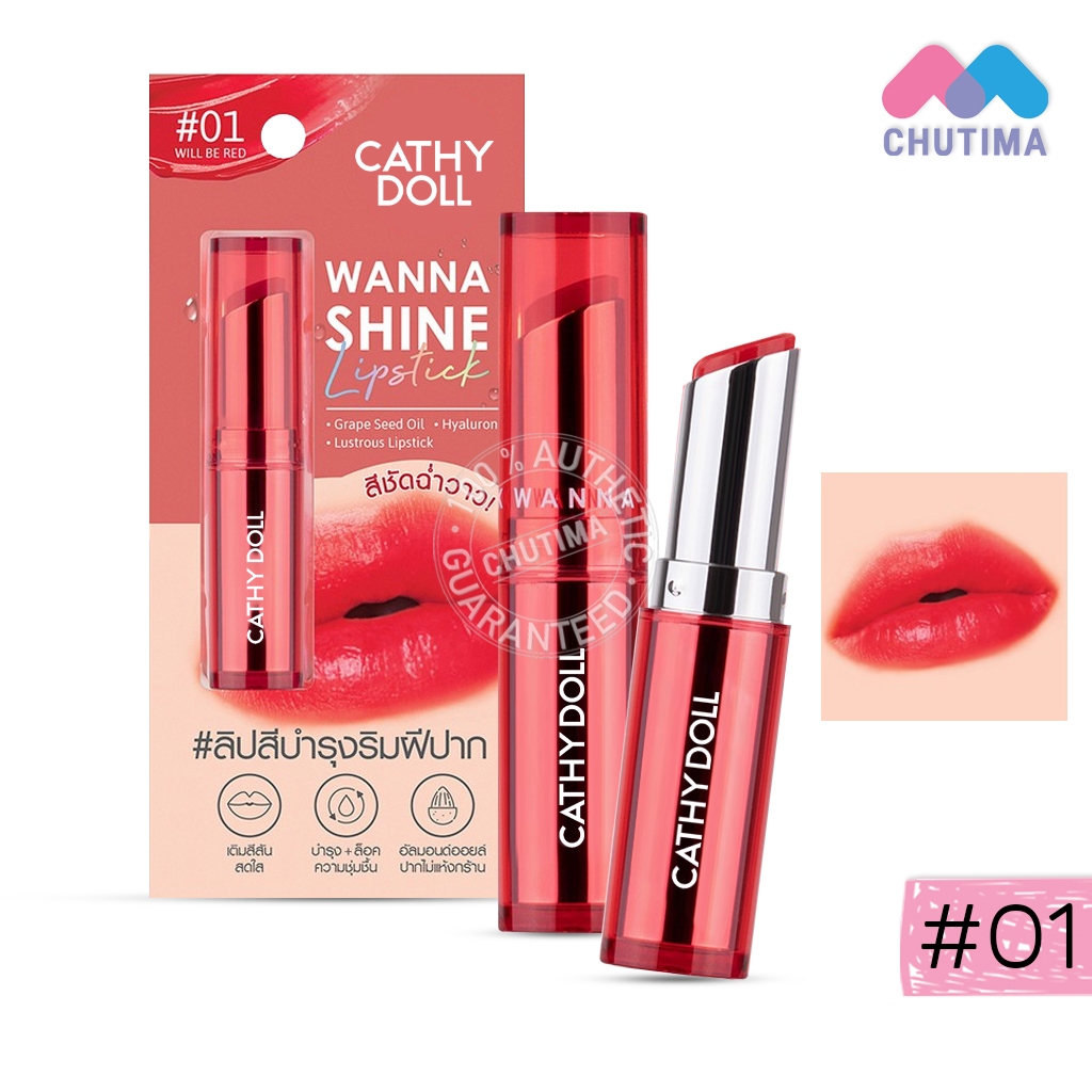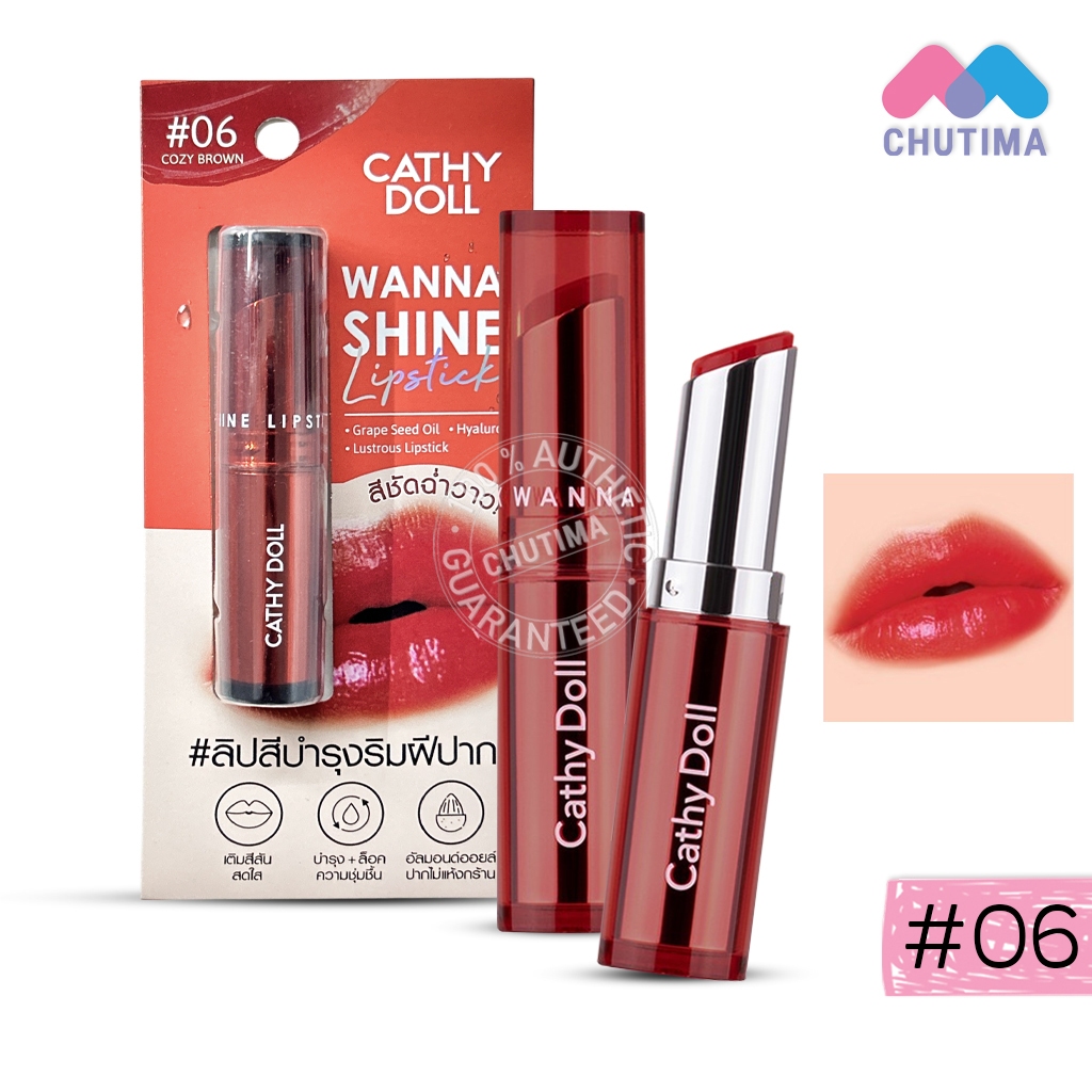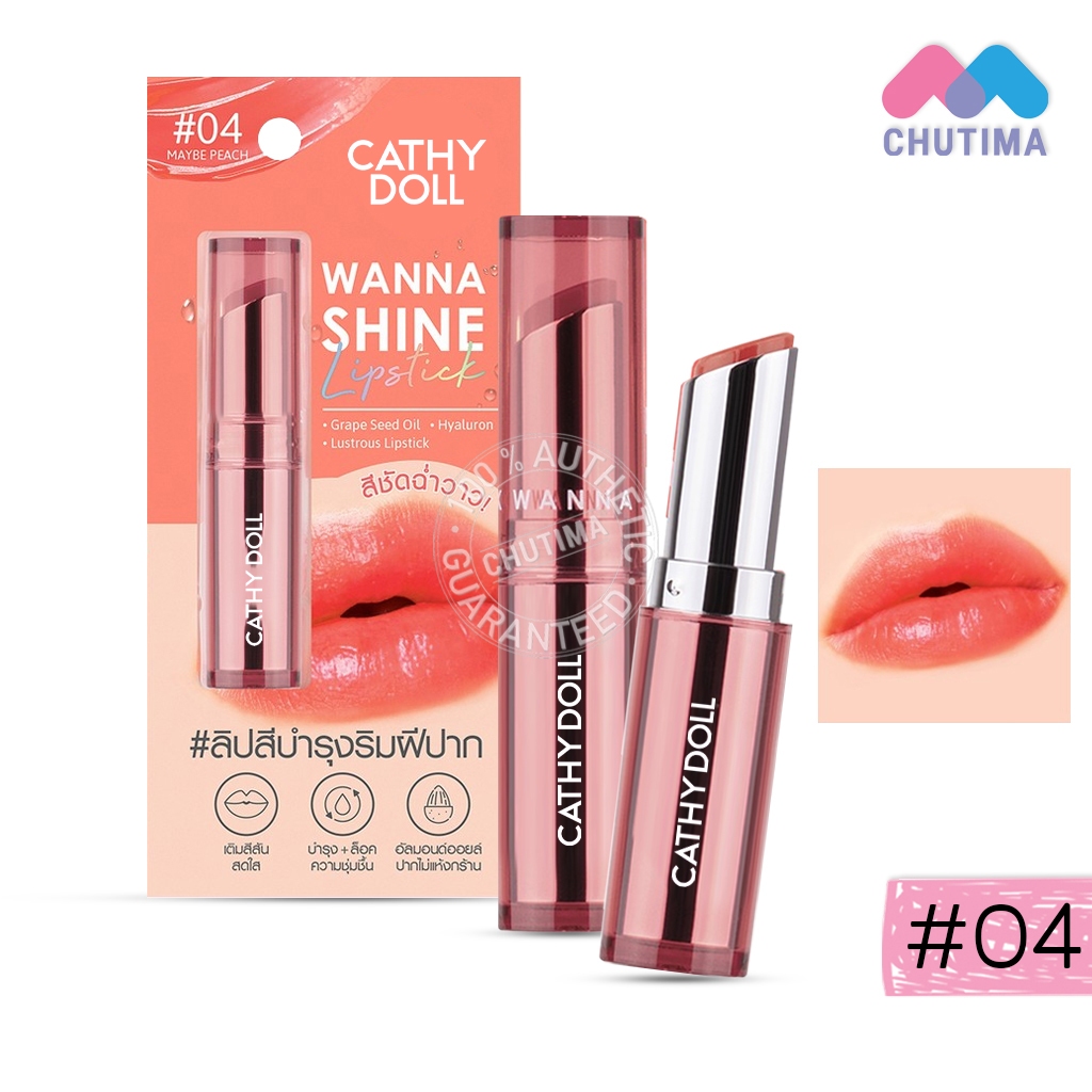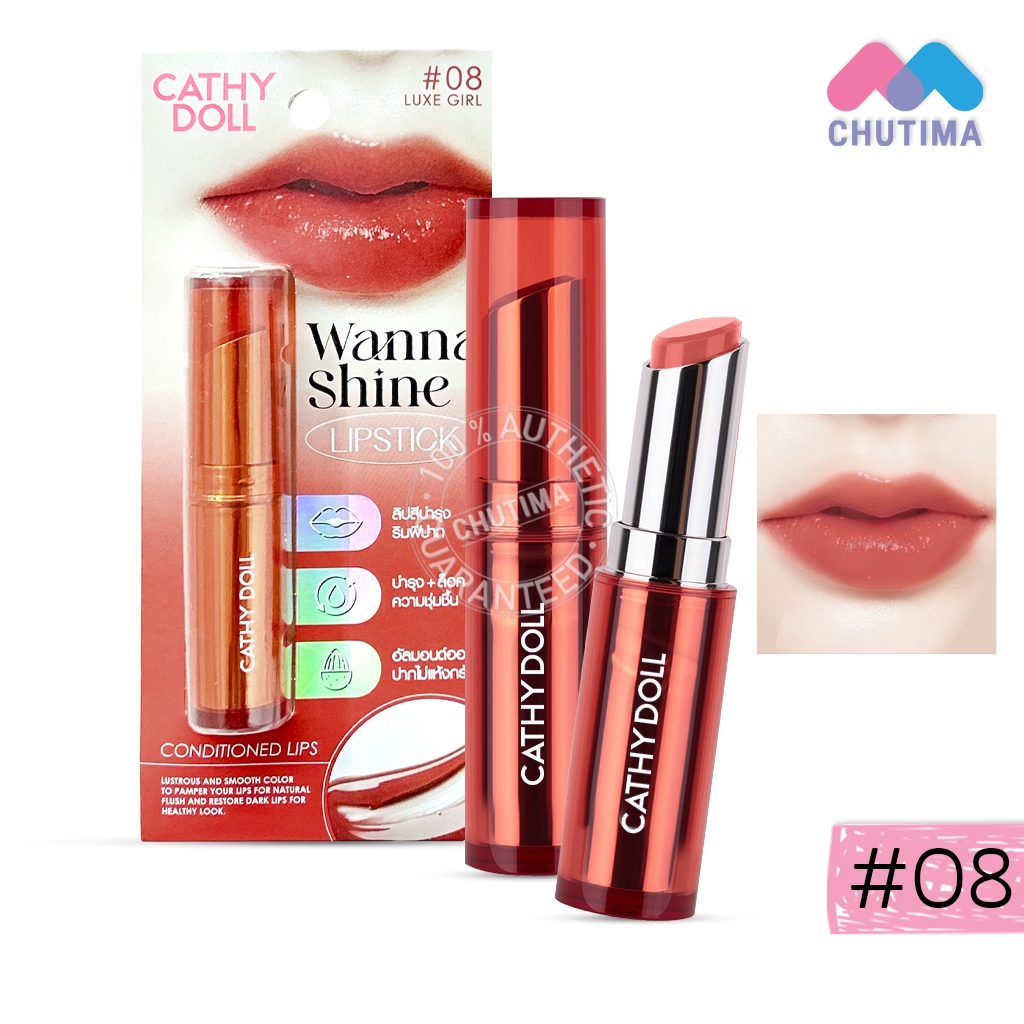 เคที่ดอลล์ วันนาไชน์ ลิปสติก ลิปสีบำรุงริมฝีปาก ลิปสติกเนื้อวาว CATHY DOLL Wanna Shine Lipstick 3g.