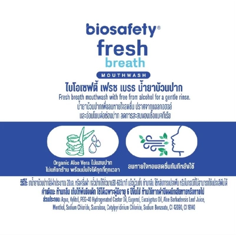 ส่งฟรี/มีไลฟ์ (1ขวด)Biosafety " น้ำยาบ้วนปาก " ไบโอเซฟตี้ เฟรชเบรธ 250 มล.