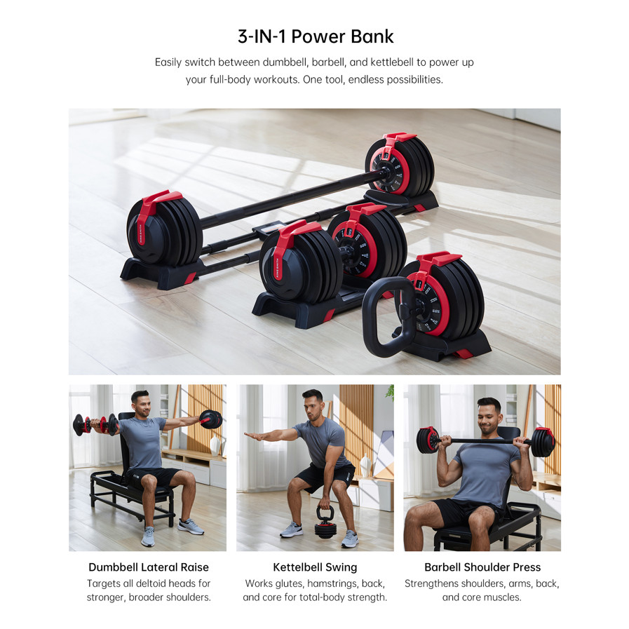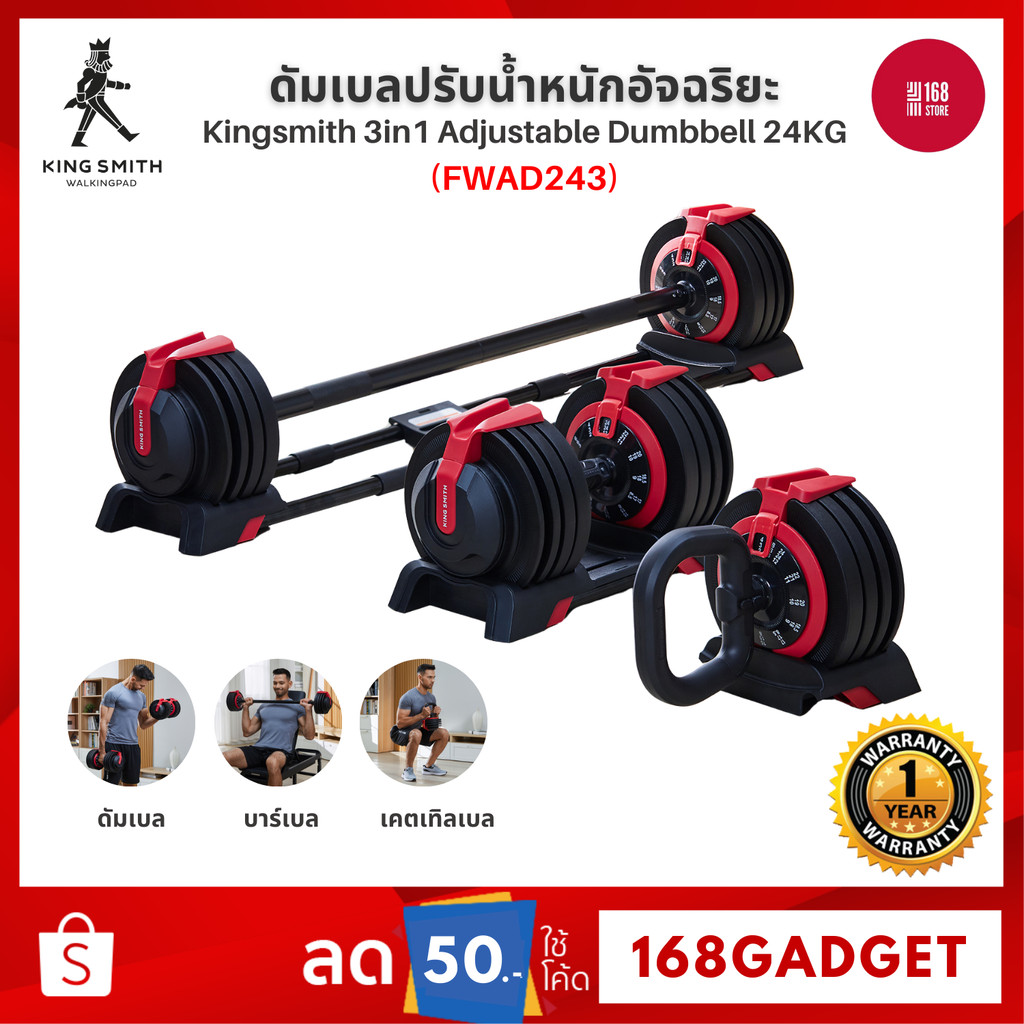 Kingsmith 3 in one Adjustable Dumbbell FWAD243 24KG ดัมเบลปรับนํ้าหนัก มาพร้อมฐานวางดัมเบล แผ่นเหล็กเคลือบ ABS
