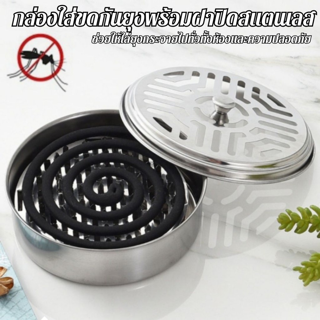 ที่ใส่ยากันยุง กล่องวางขดยากันยุง สแตนเลสไม่เป็นสนิม พร้อมฝาปิดปลอดภัย ขนาดพกพาสะดวก