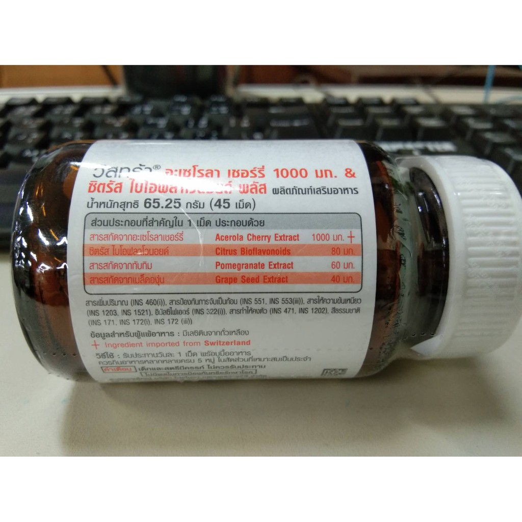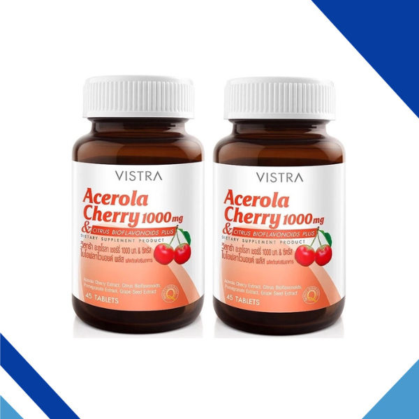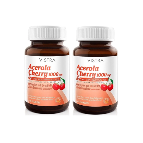 Vistra Acerola Cherry 1000 mg 45 เม็ด วิสทร้า อะเซโรลา เชอร์รี่ ขนาด 1000 มก. จำนวน 2 ขวด (2X11942)