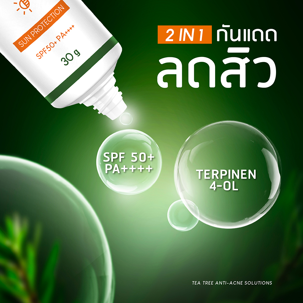 Plantnery Tea Tree Sunscreen กันแดด ที ทรี แพลนท์เนอรี่ สูตร ลดสิว ควบคุมความมัน ปกป้องทุกรังสีทั้ง UVA/UVB ขนาด 30 ml