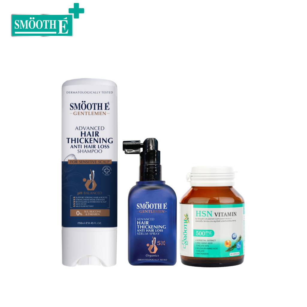 [เซ็ตสุดคุ้ม] Smooth E Anti Hair Loss for Gentlemen Set แชมพูยาลดผมร่วง ยับยั้งฮอร์โมน DHT บำรุงจากภายใน สำหรับผู้ชาย
