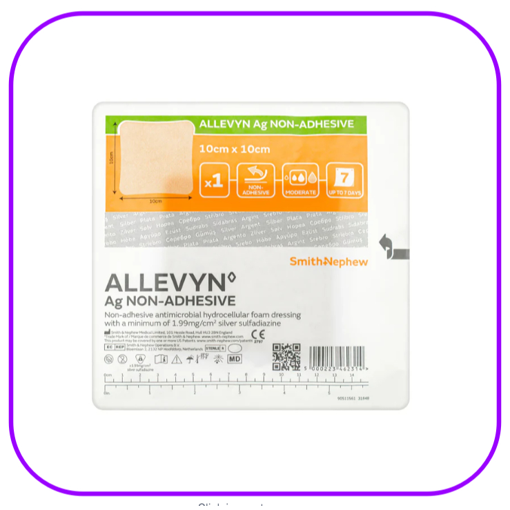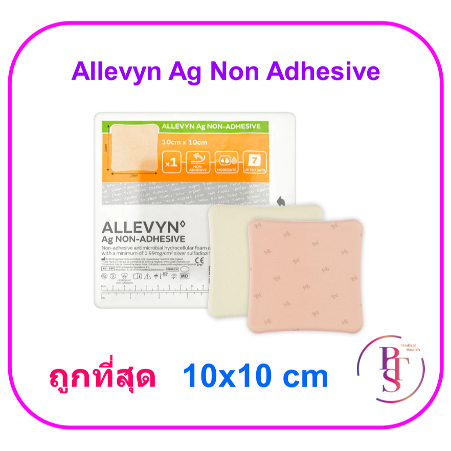 Allevyn Ag Non-Adhesive 10x10 cm แผ่นแปะแผลกดทับ ไม่มีขอบกาว มียาฆ่าเชื้อ (ราคาต่อ 1 แผ่น)