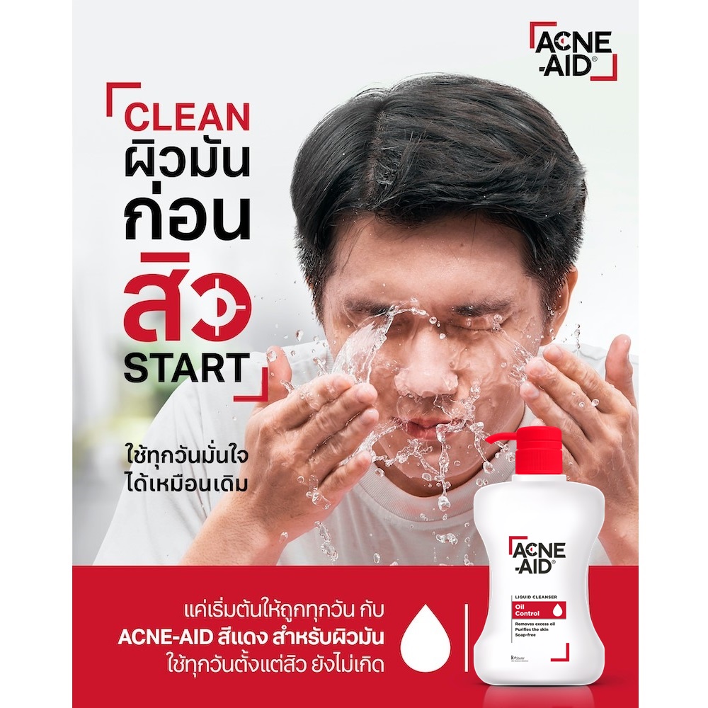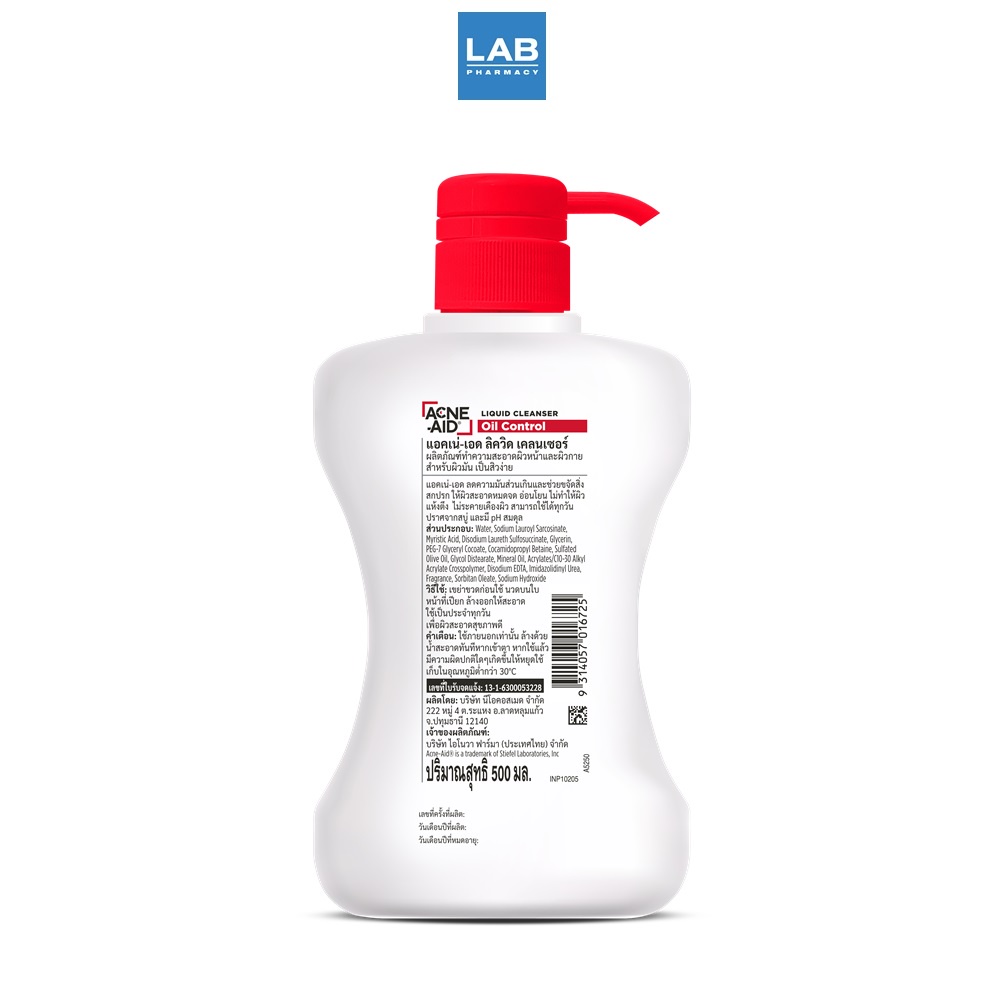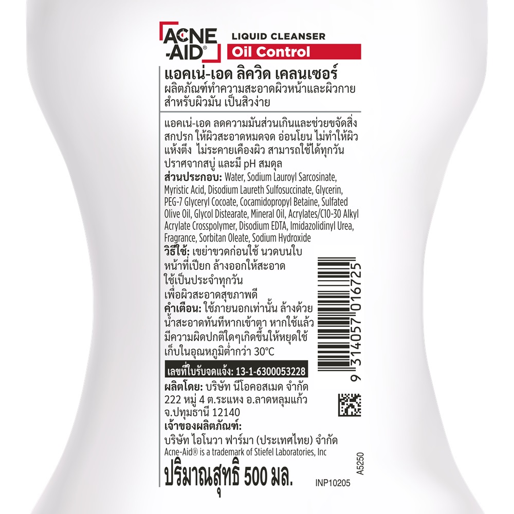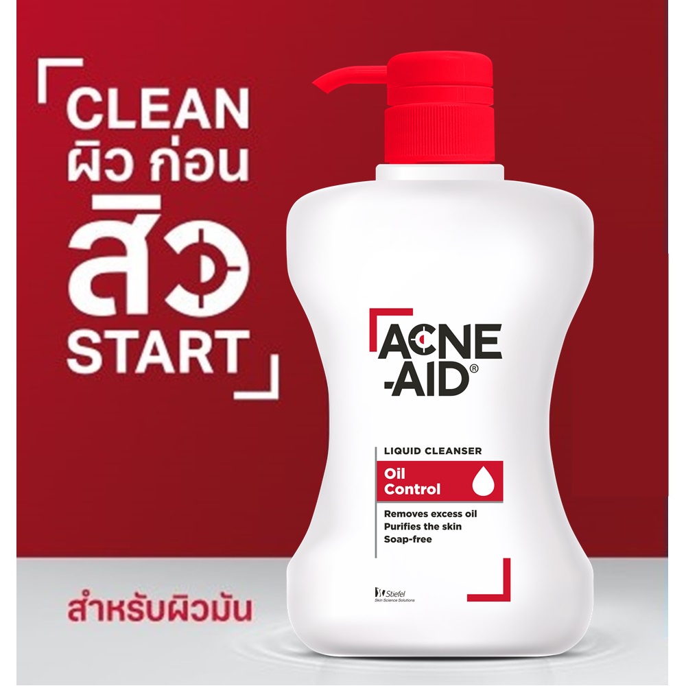 Acne-Aid Liquid Cleanser Oil Control 500 ml. - แอคเน่-เอด ลิควิด เครนเซอร์ (สีแดง) ผลิตภัณฑ์ทำความสะอาดผิวหน้าและผิวกาย สำหรับผิวมัน เป็นสิวง่าย