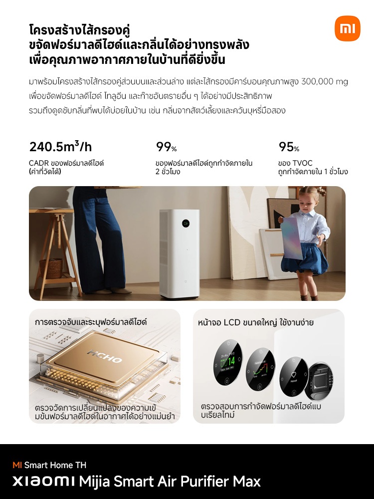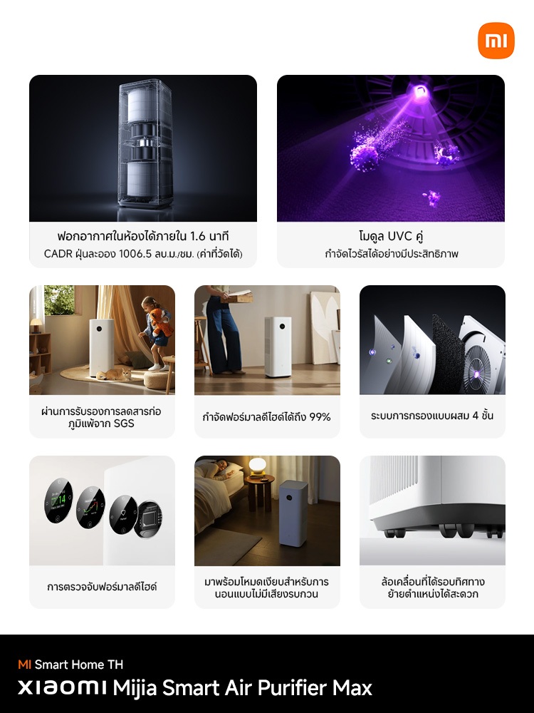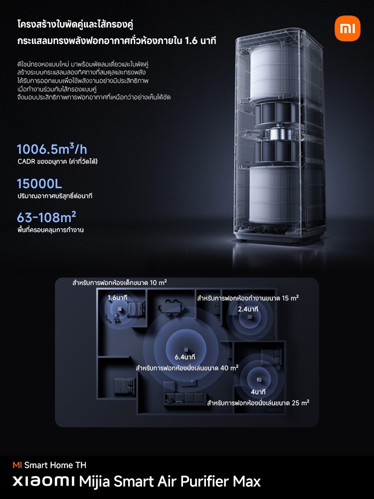 Xiaomi Mijia Smart Air Purifier Max ฟอกอากาศ I 1006.5m³/h อนุภาค CADR I 63-108 m² พื้นที่ให้บริการ I มีล้อเลื่อน