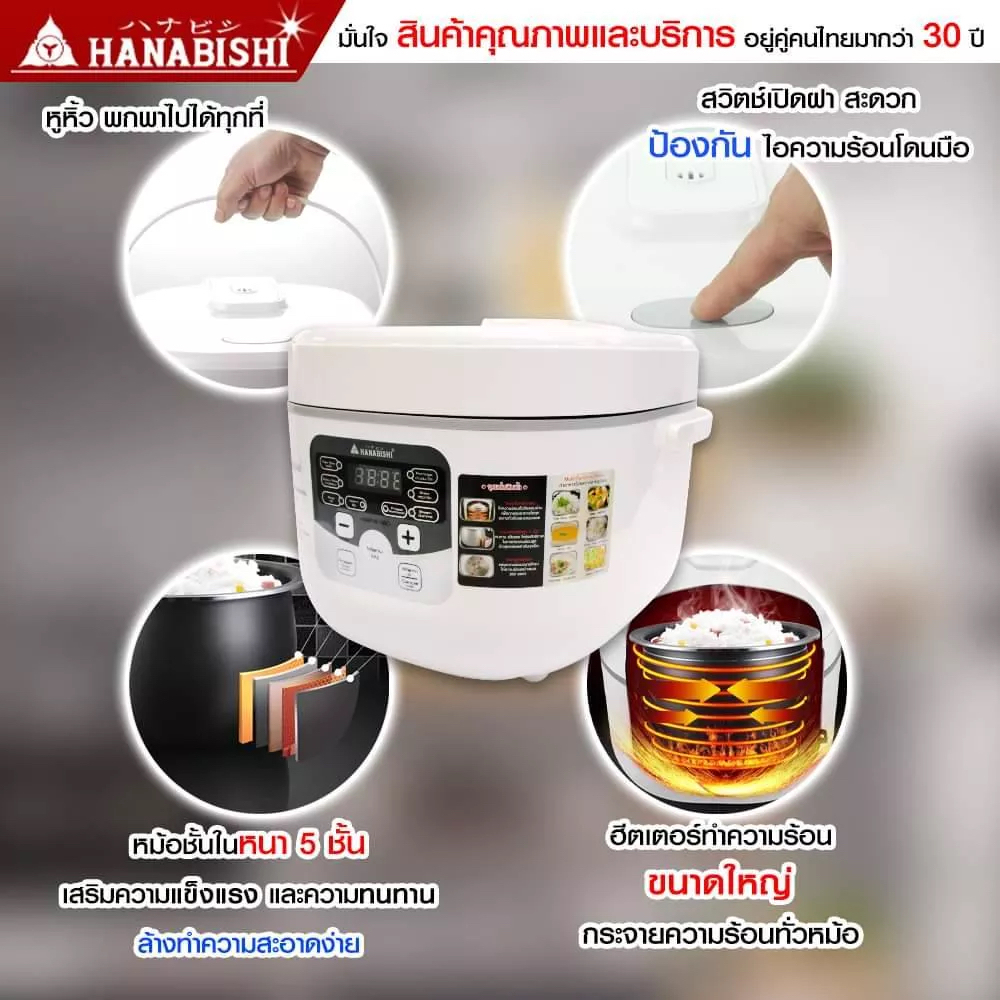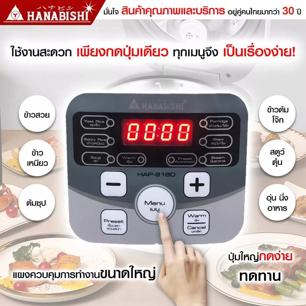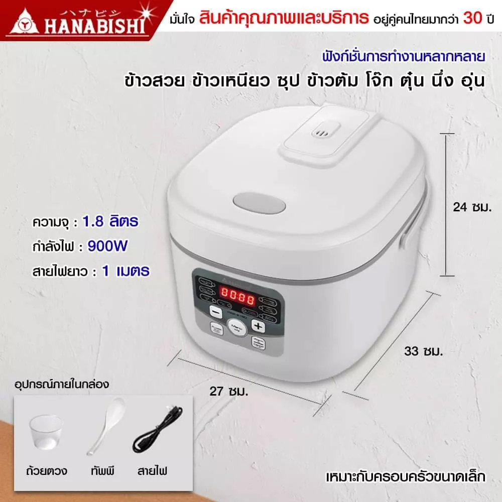 Hanabishi หม้อหุงข้าวดิจิตอล 1.8 ลิตร รุ่น HAP-818D แถมฟรี ทัพพี และถ้วยตวง