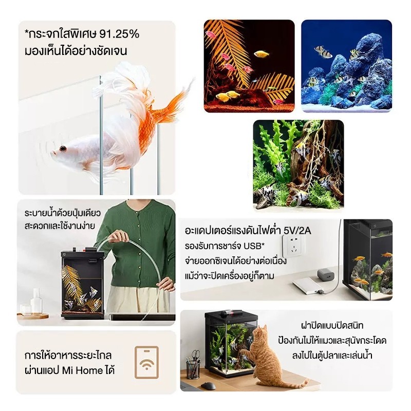 Xiaomi Mijia smart destop fish tank ตู้ปลาอัจฉริยะ 10L ตู้ปลาตั้งโต๊ะ เชื่อมต่อและควบคุมผ่านแอพได้ ทรงดีไซน์ เรียบหรู