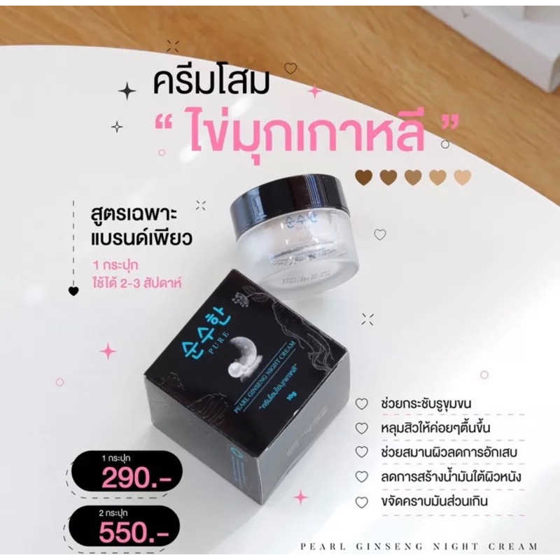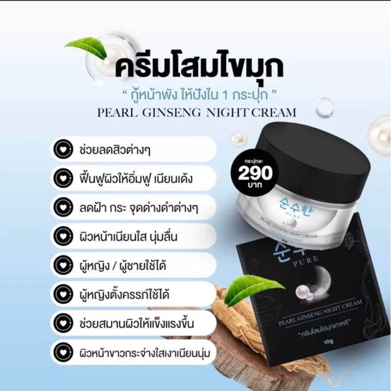 ครีมโสมไข่มุกเกาหลี PURE(pure)โสมไข่มุกเพียว ครีมทาหน้า เซรั่มเพียว เซรั่มฮายัง กันแดด