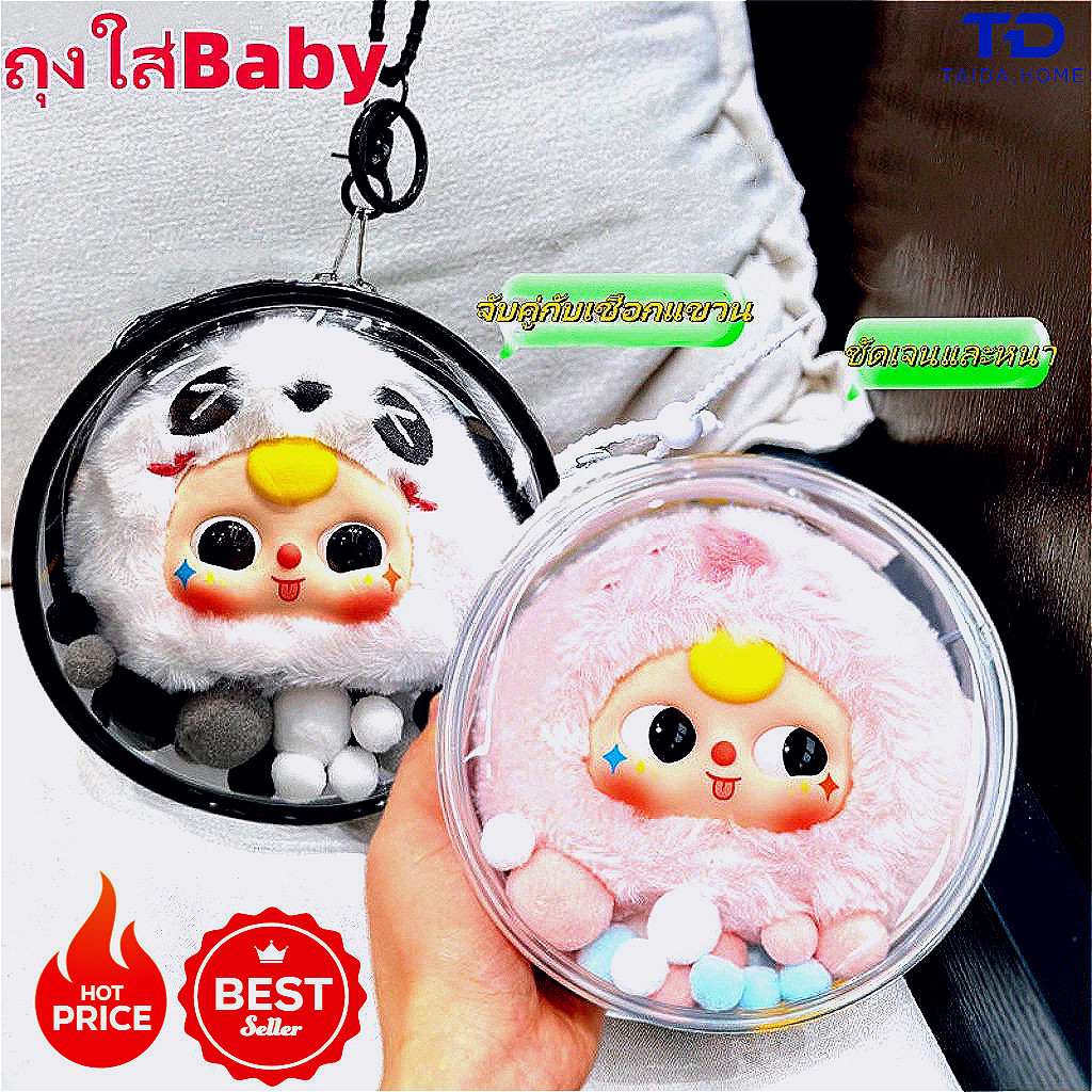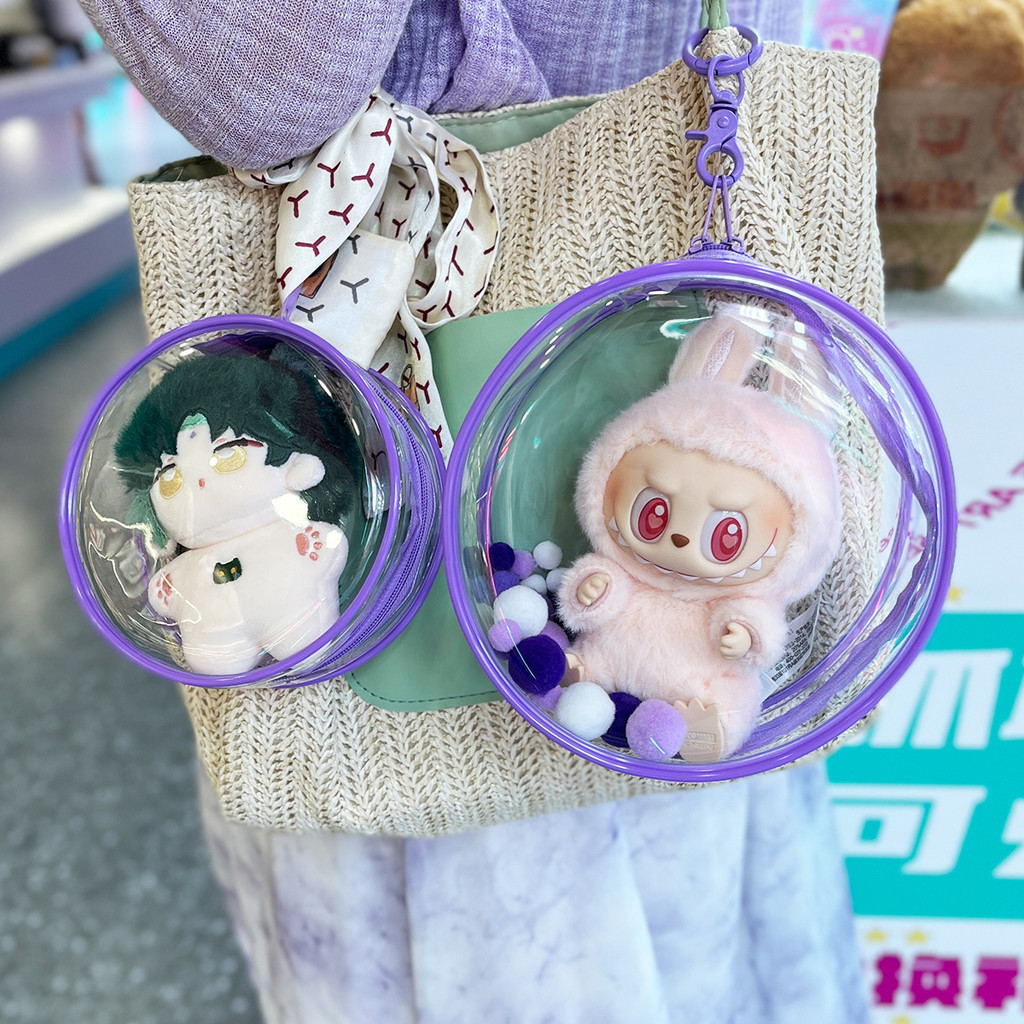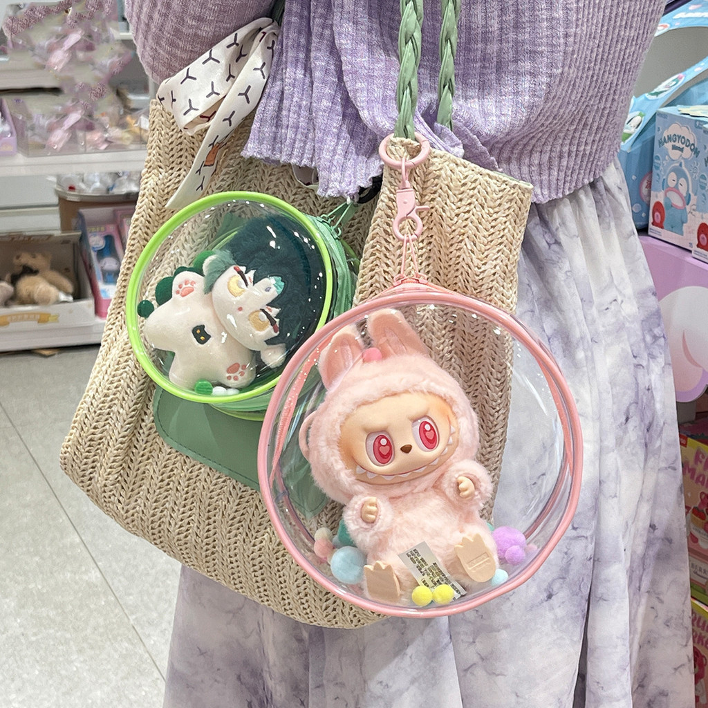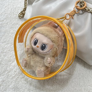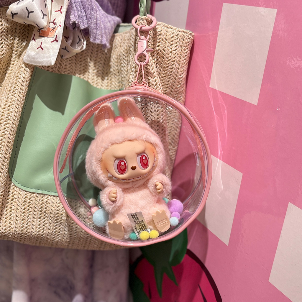 กระเป๋าใส่ลาบูบู้ กระเป๋าตุ๊กตาไวนิล พวงกุญแจ PVC แบบใส หนา กันฝุ่น แฟชั่น มาการอง