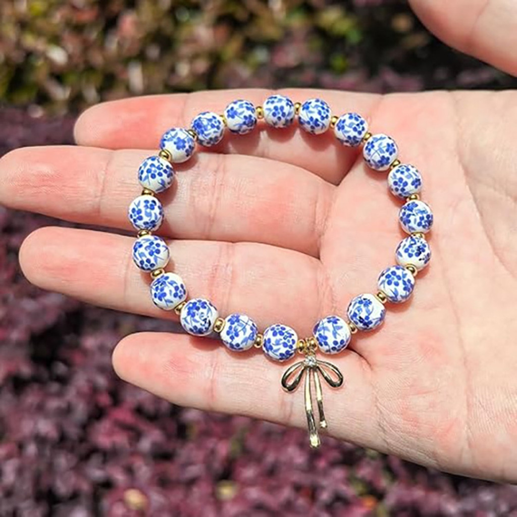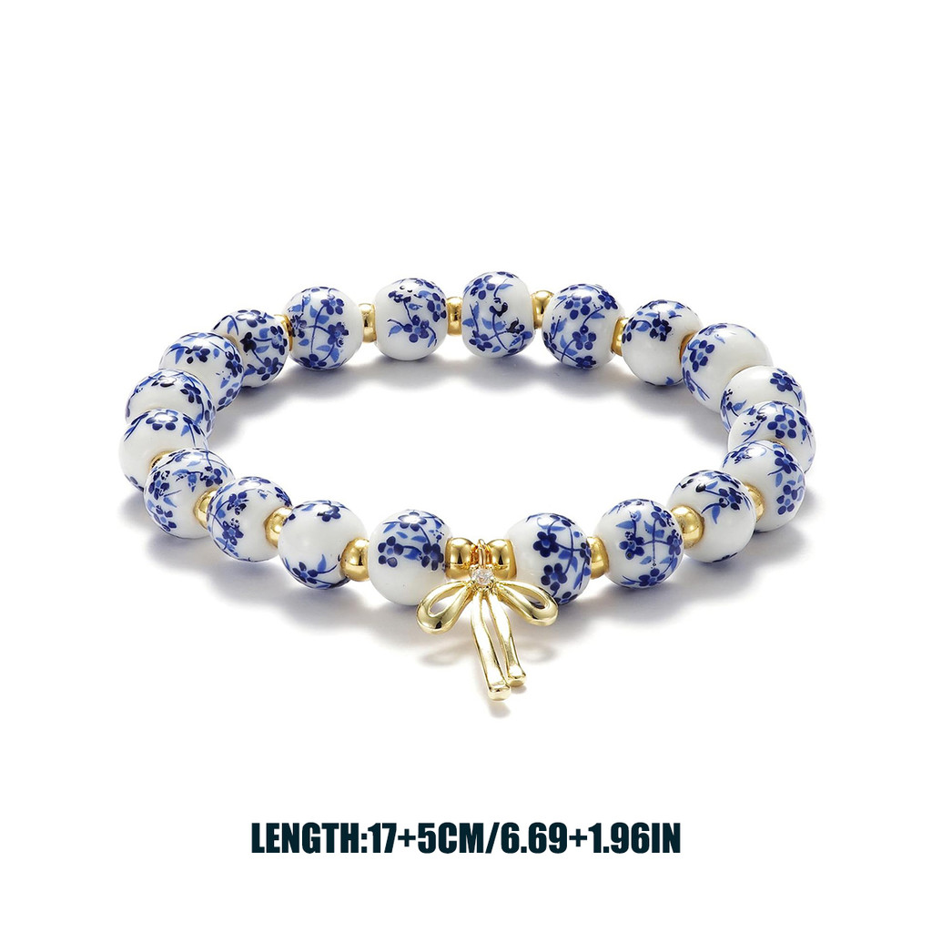 สร้อยข้อมือแฮนด์เมดวินเทจสำหรับผู้หญิง มีลูกปัดและโบว์ ออกแบบโรแมนติก ยืดนุ่ม เหมาะทำของขวัญ