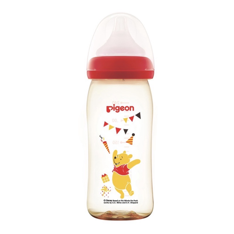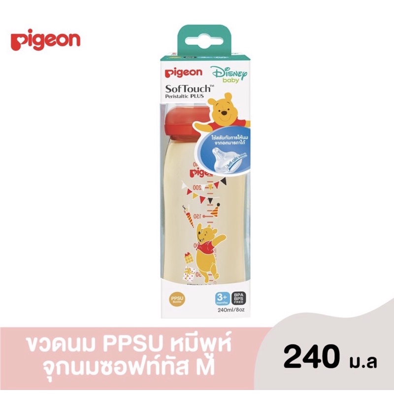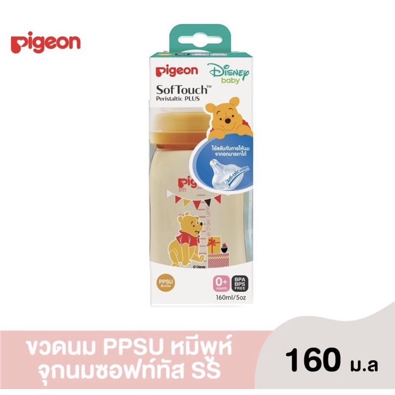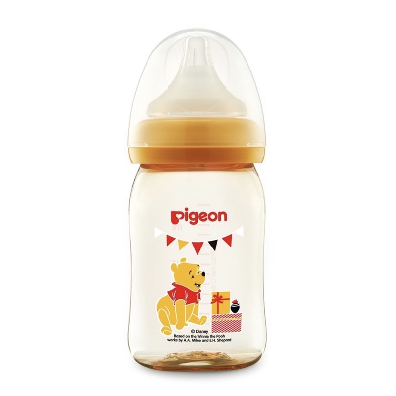 Pigeon พีเจ้น ขวดนมสีชา PPSU หมีพูห์ ขวดนมคอกว้างขนาด 5ozพร้อมจุกนมเสมือนมารดา SofTouch ไซส์SS (แพ็ค1ขวด)