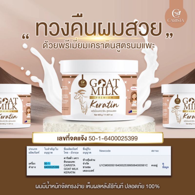 Carista Goat Milk Keratin เคราติน พรีเมี่ยม นมแพะ [500 กรัม] สารสกัดสุดพรีเมี่ยม บำรุงเส้นผม