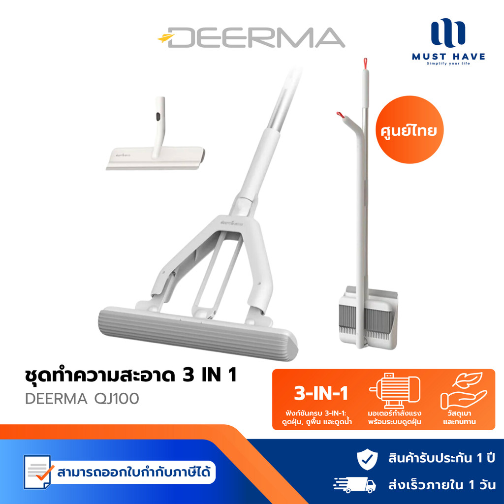 Deerma Multifunctional Cleaning Broom QJ100 ไม้กวาด ที่โกยผง ที่เช็ดกระจก ไม้ถูพื้น ชุดทำความสะอาดอเนกประสงค์ 3 in 1