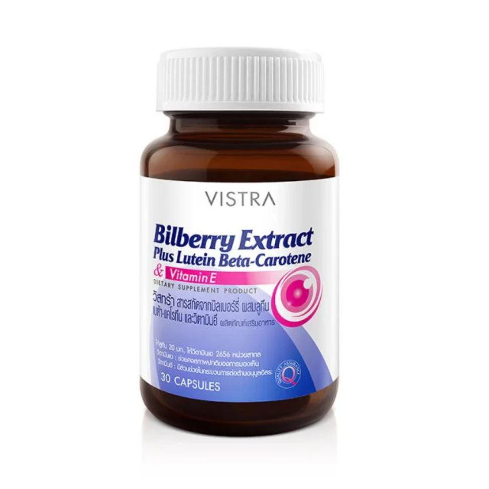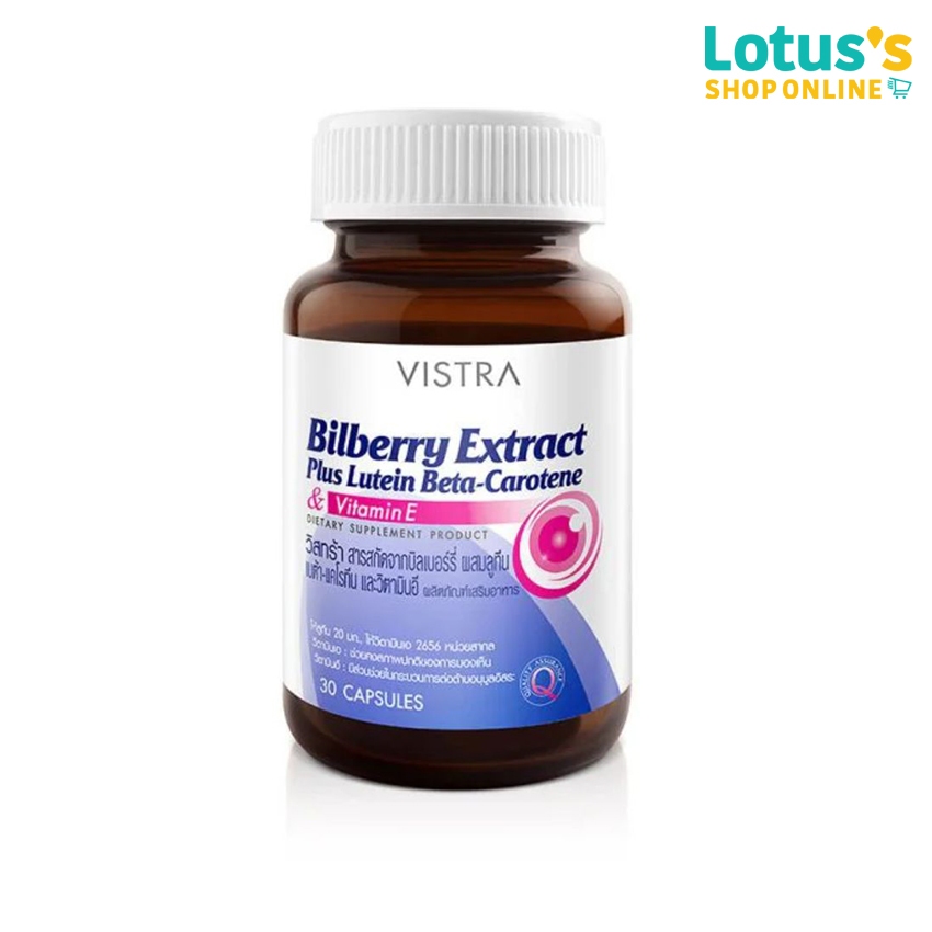 วิสทร้า สารสกัดจากบิลเบอร์รี่ ผสมลูทีน เบต้า-แคโรทีน และวิตามินอี 30 แคปซูล VISTRA BILBERRY EXTRACT PLUS LUTEIN BETA-CAR