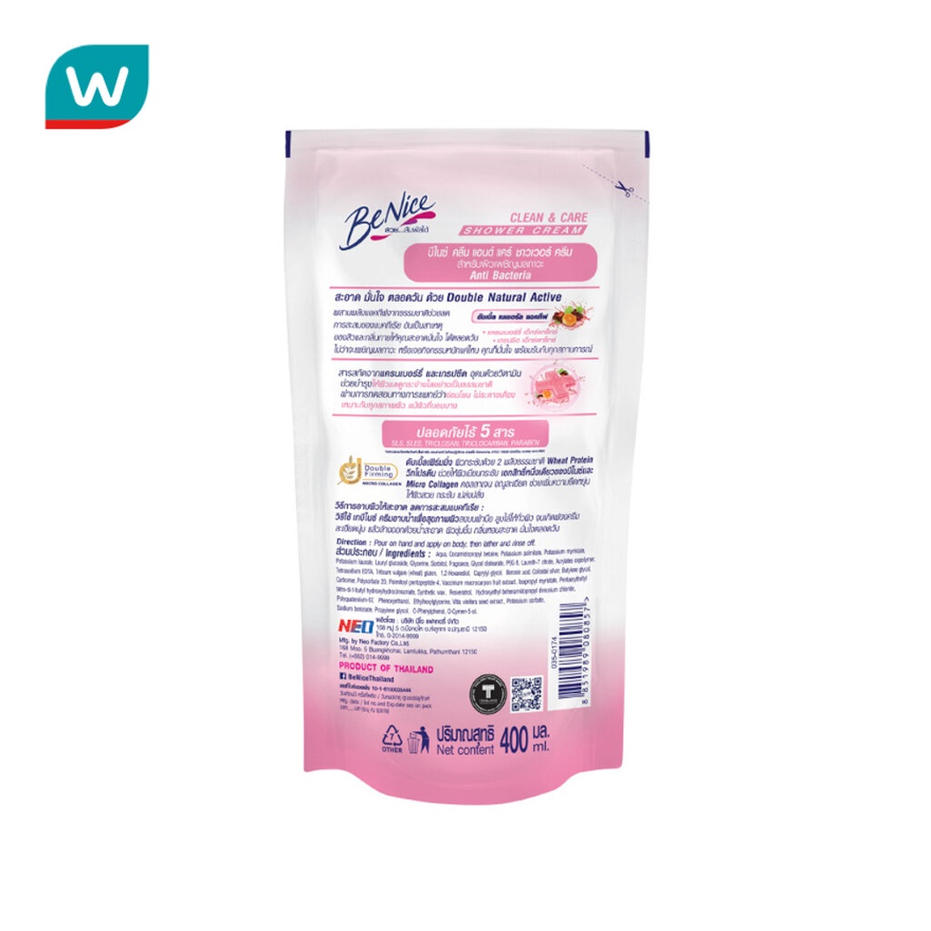 Benice บีไนซ์ ครีมอาบน้ำ แอนตี้ แบคทีเรีย คลีน แอนด์ แคร์ 400 มล. ถุงเติม