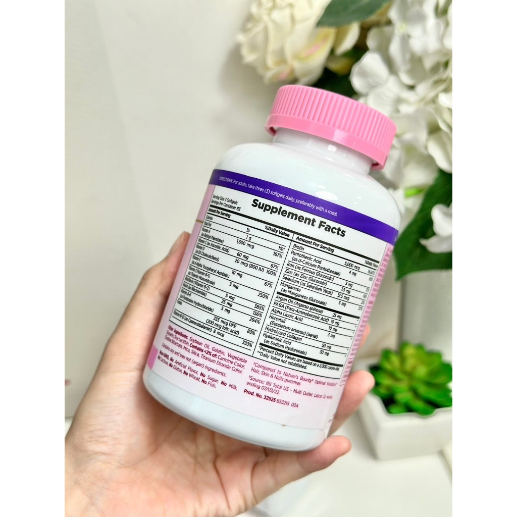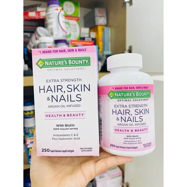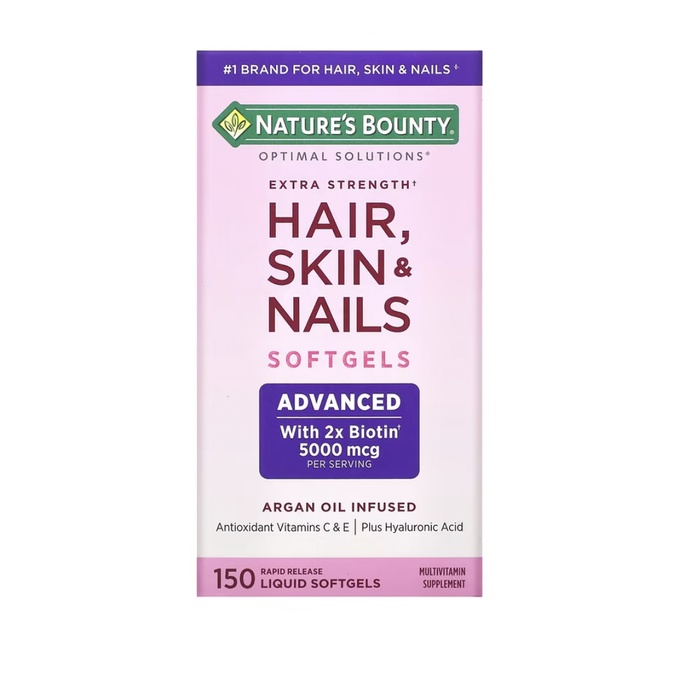 Nature's Bounty Optimal Solutions Extra Strength Hair Skin & Nails 250 Softgel ,150ซอฟเจล