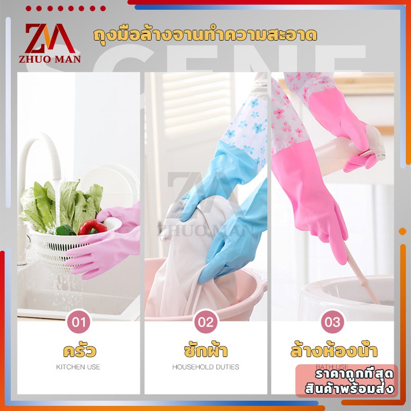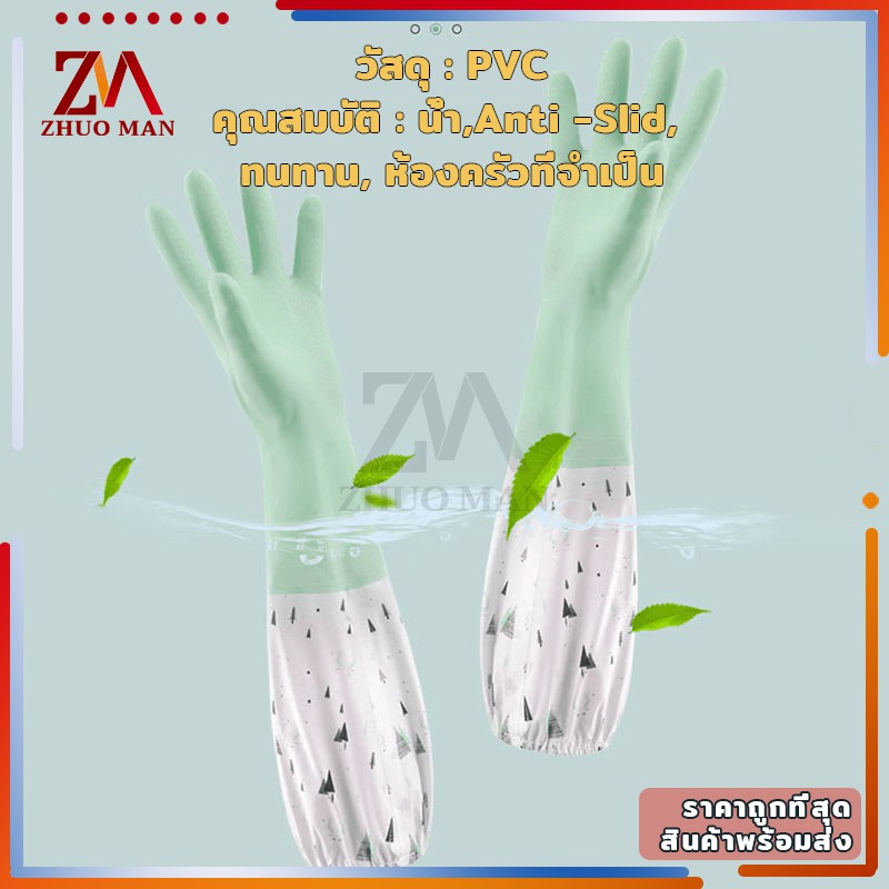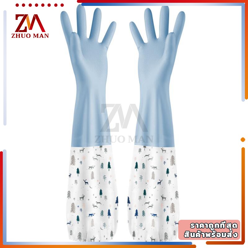 ถุงมือล้างจาน ความสะอาด แบบยาว ยืดหยุ่น กันน้ำได้ สวมใส่สบาย