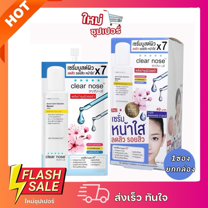 [ 1ซอง\ยกกล่อง ] Clear Nose เคลียร์โนส แอคเน่ แคร์โซลูชั่นเซรั่มบูสต์ผิวลดสิวรอยสิวหน้าใส.8กรัม