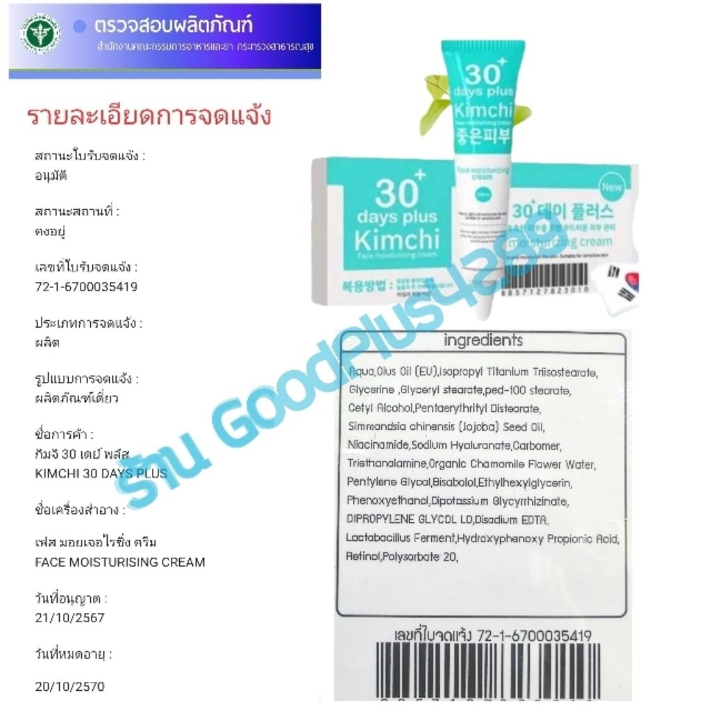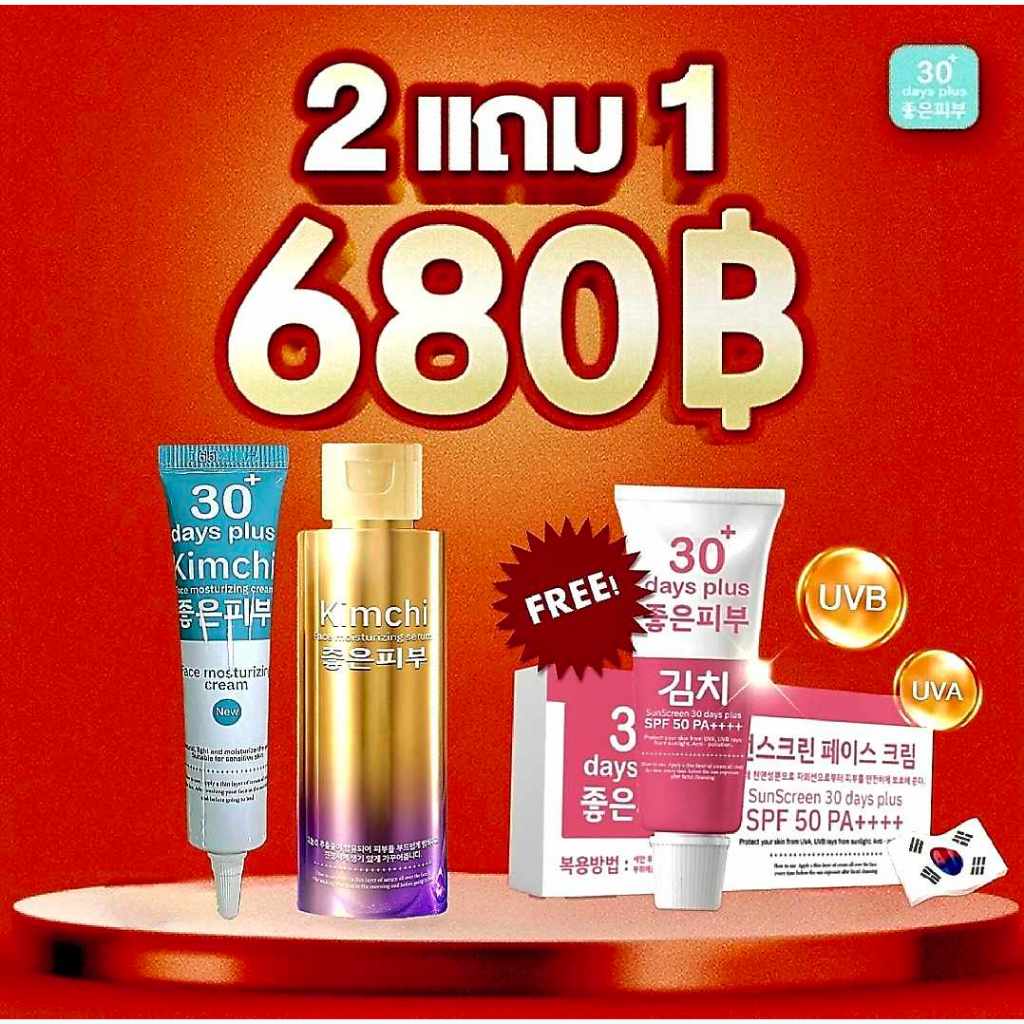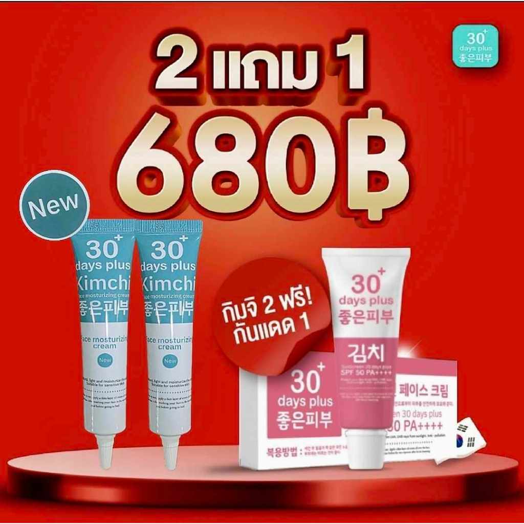 แพคเกจใหม่ ซื้อ2ฟรี1 ครีมกิมจิ,เซรั่มกิมจิ มอยเจอไรซิ่ง KIMCHI 30 DAYS PLUS สิว ฝ้า กระ จุดด่างดำ