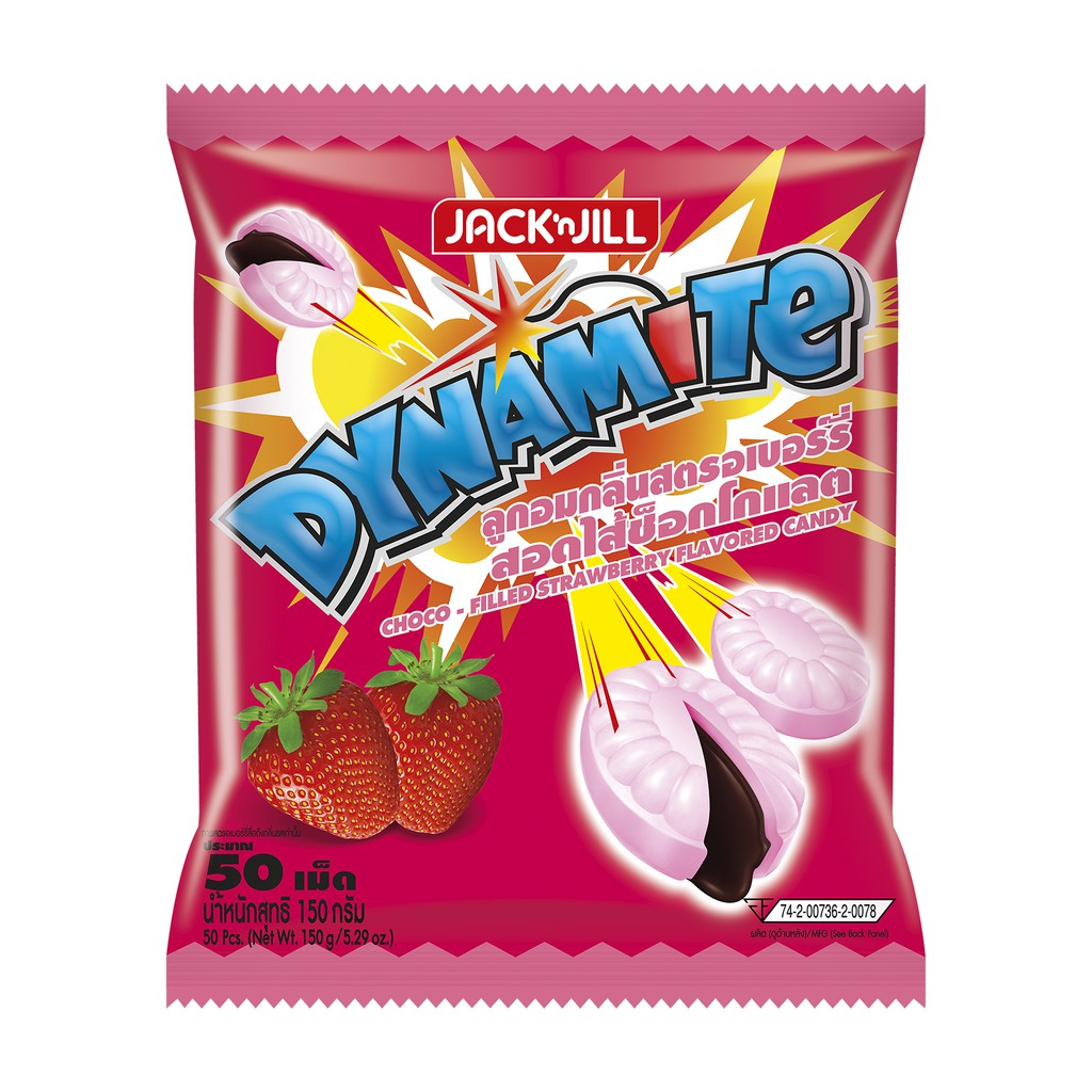 ไดนาไมท์ ลูกอม รสมิ้นต์สอดไส้ช็อกโกแลต, รสสตรอเบอร์รี่, รสส้ม, รสโคล่า ขนาด40/50เม็ด