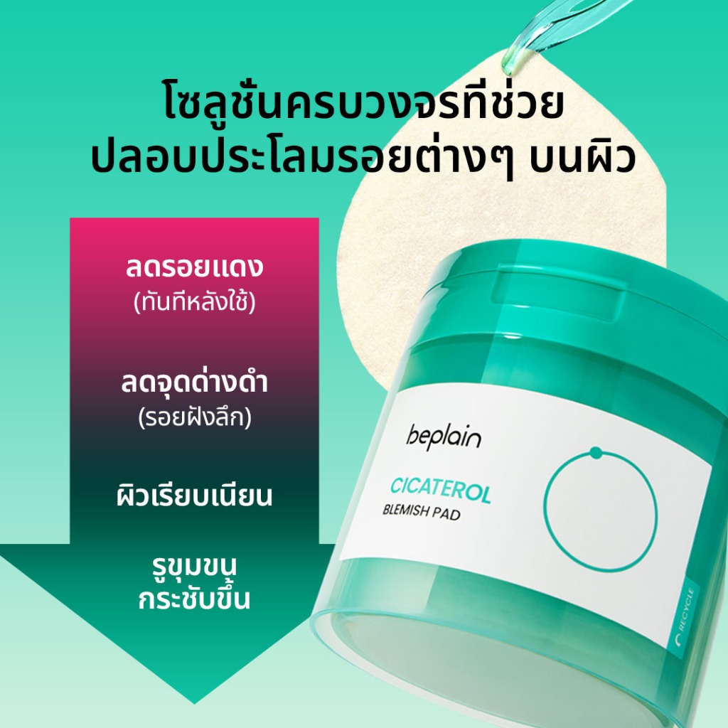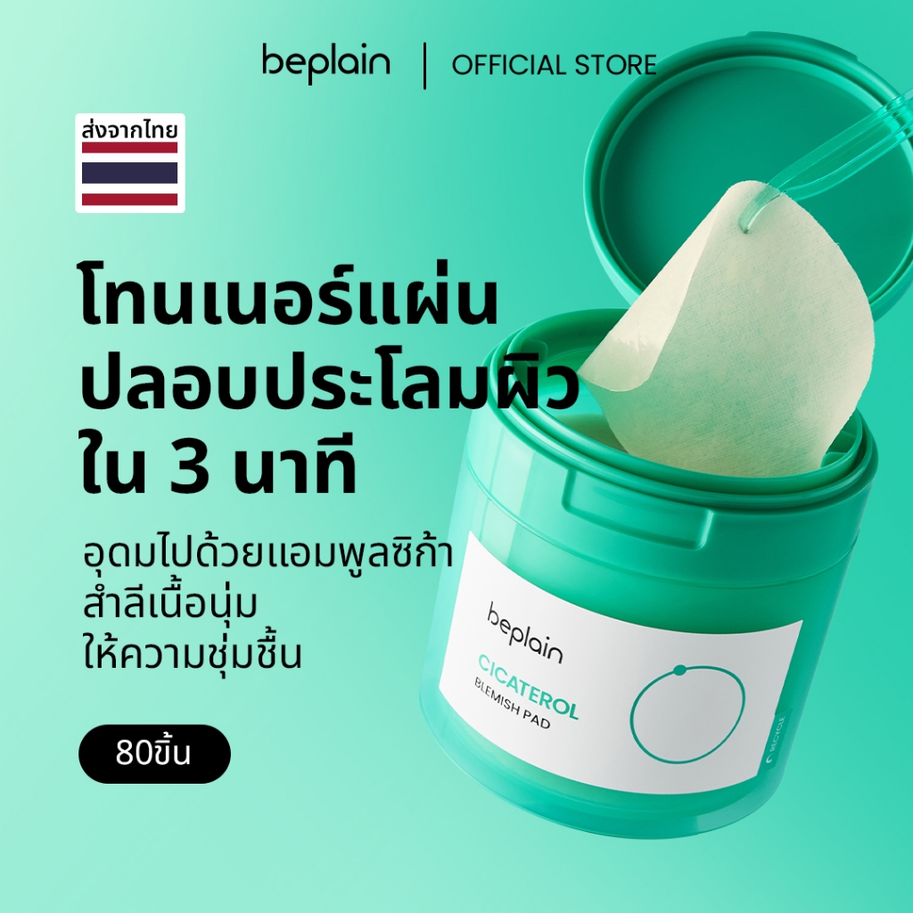 Beplain Cicaterol โทนเนอร์แพดซิก้าเทโรล 80แผ่น 185ml | ปลอบประโลมผิวจากแสงแดดและมลภาวะ | CICATEROL BLEMISH PAD 80 Pads