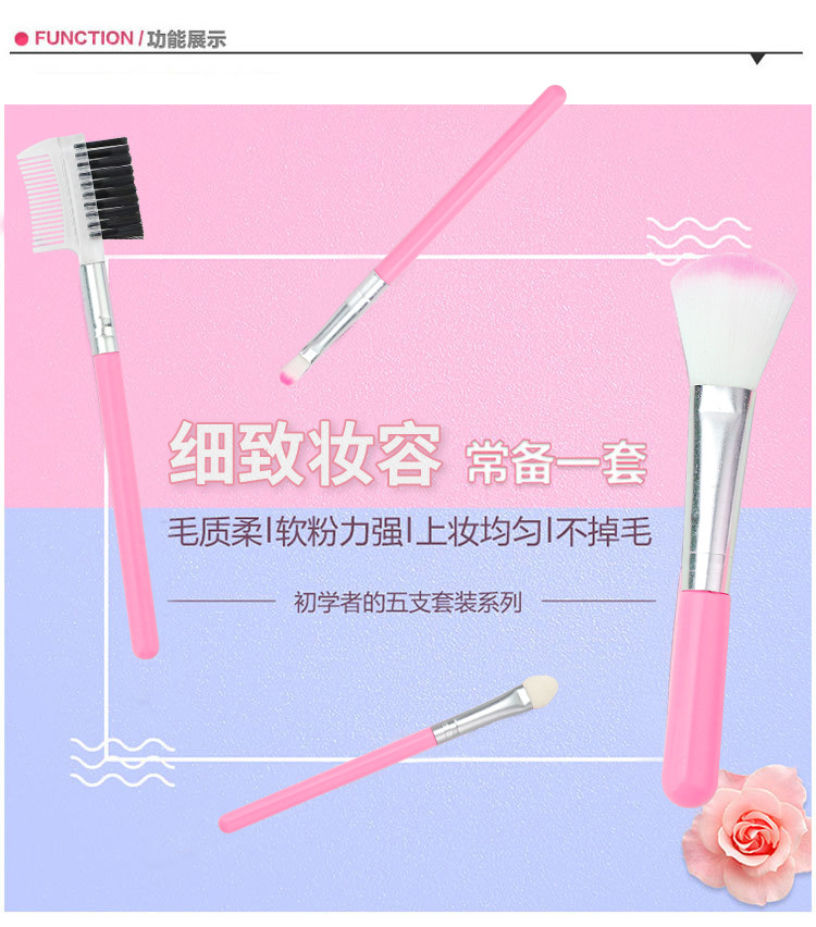 Snailgirl ชุดแปรงแต่งหน้ามัลติฟังก์ชั่นสีชมพู 5 ชิ้น