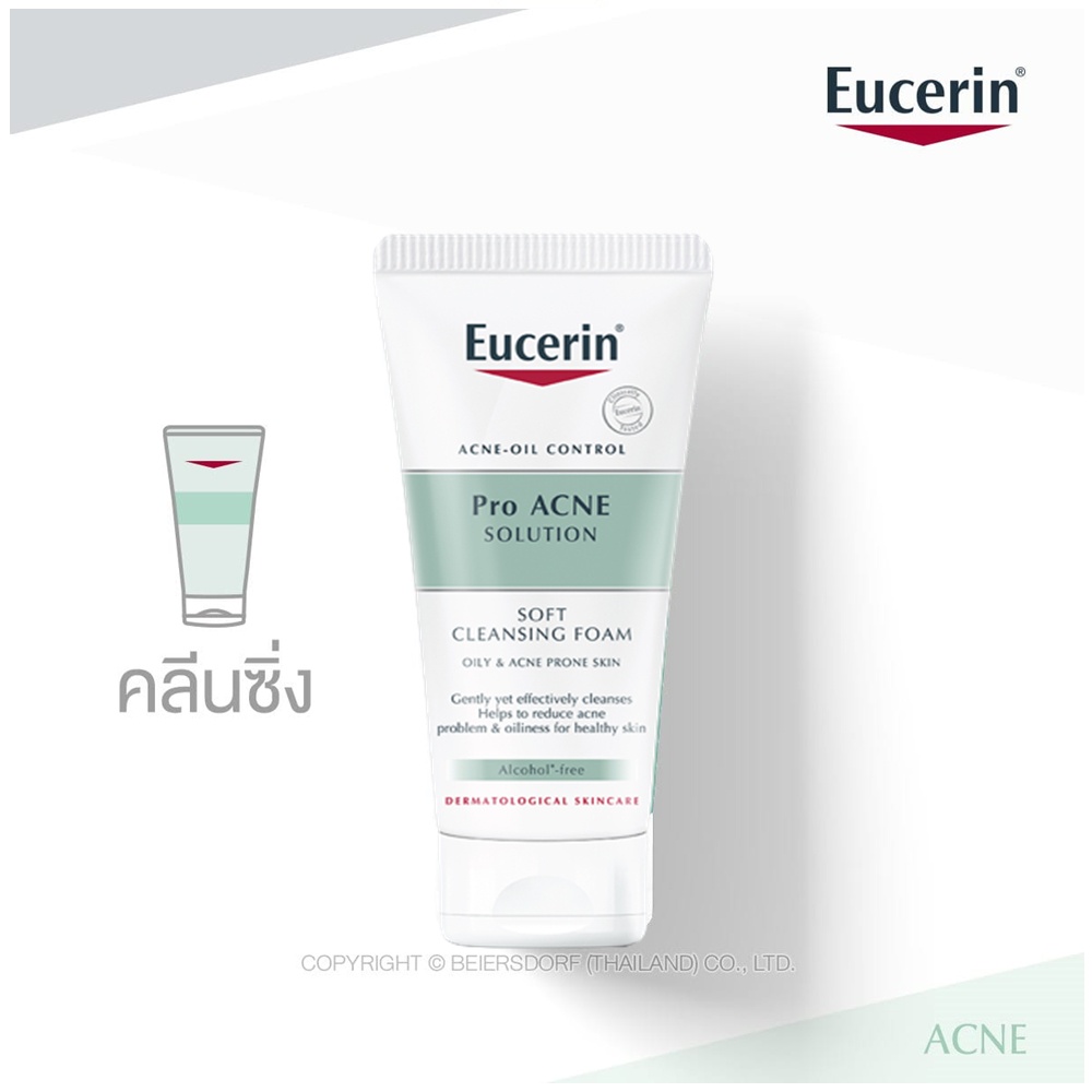 Eucerin Pro Acne Solution Soft Cleansing Foam 50 ml. - โฟมล้างหน้าสำหรับคนเป็นสิว ช่วยลดปัญหาสิว 1 หลอด 50 มล.