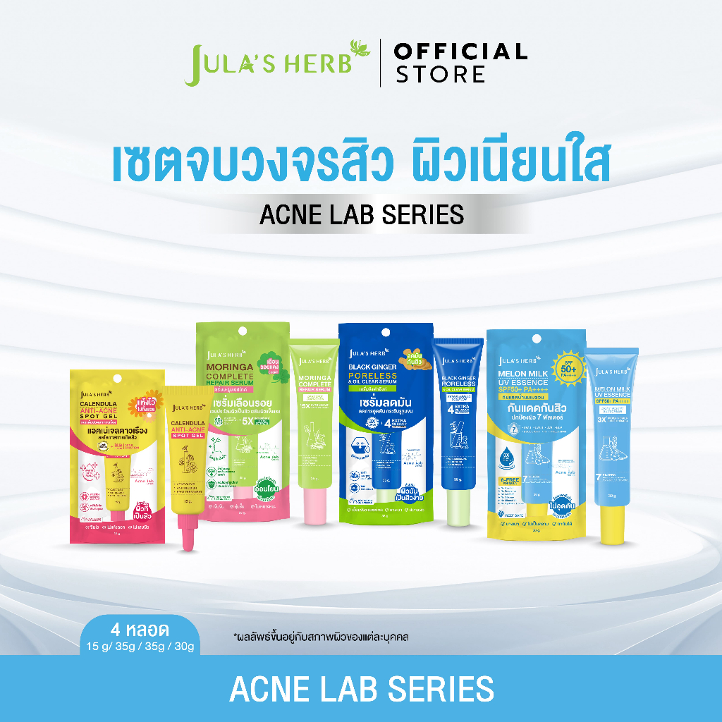[เซต 4 หลอด] เซรั่มมะรุมเปปไทด์ / เซรั่มขิงดำซิงก์ / เจลแต้ มสิวดาวเรือง / กันแดดเมลอน