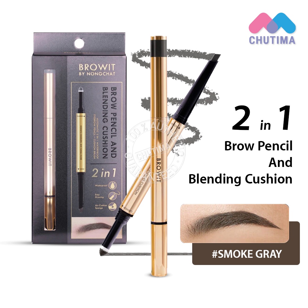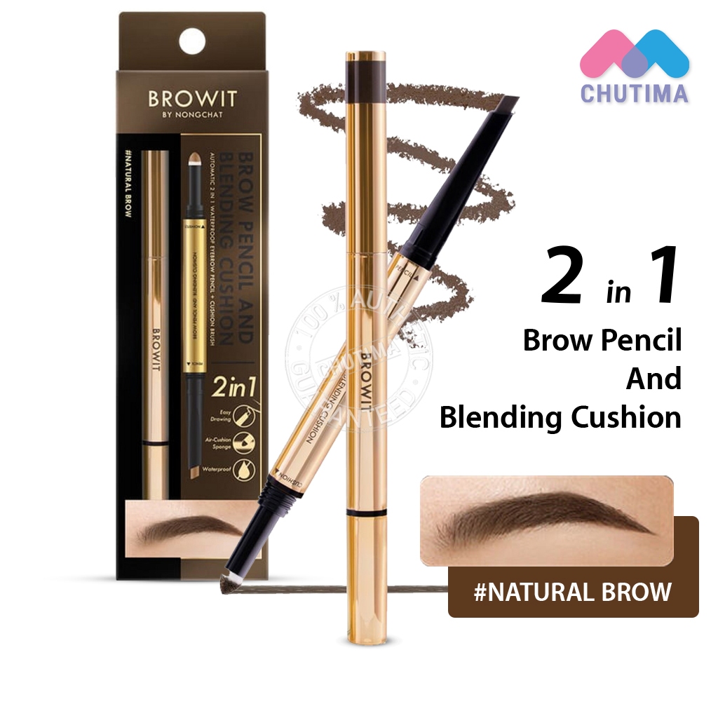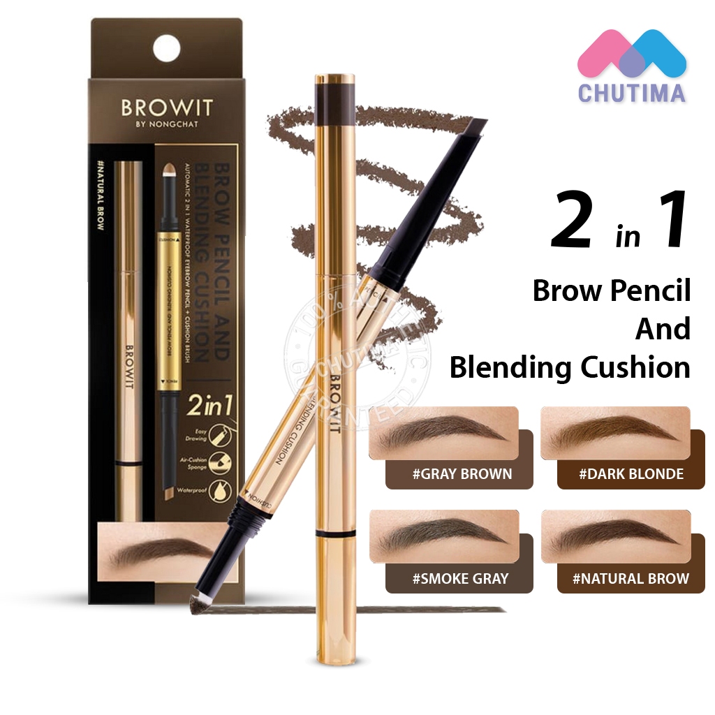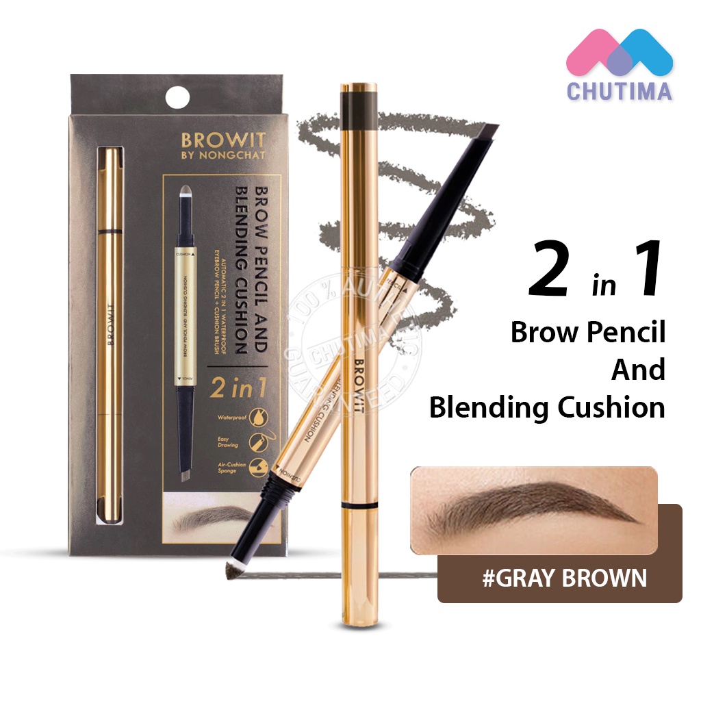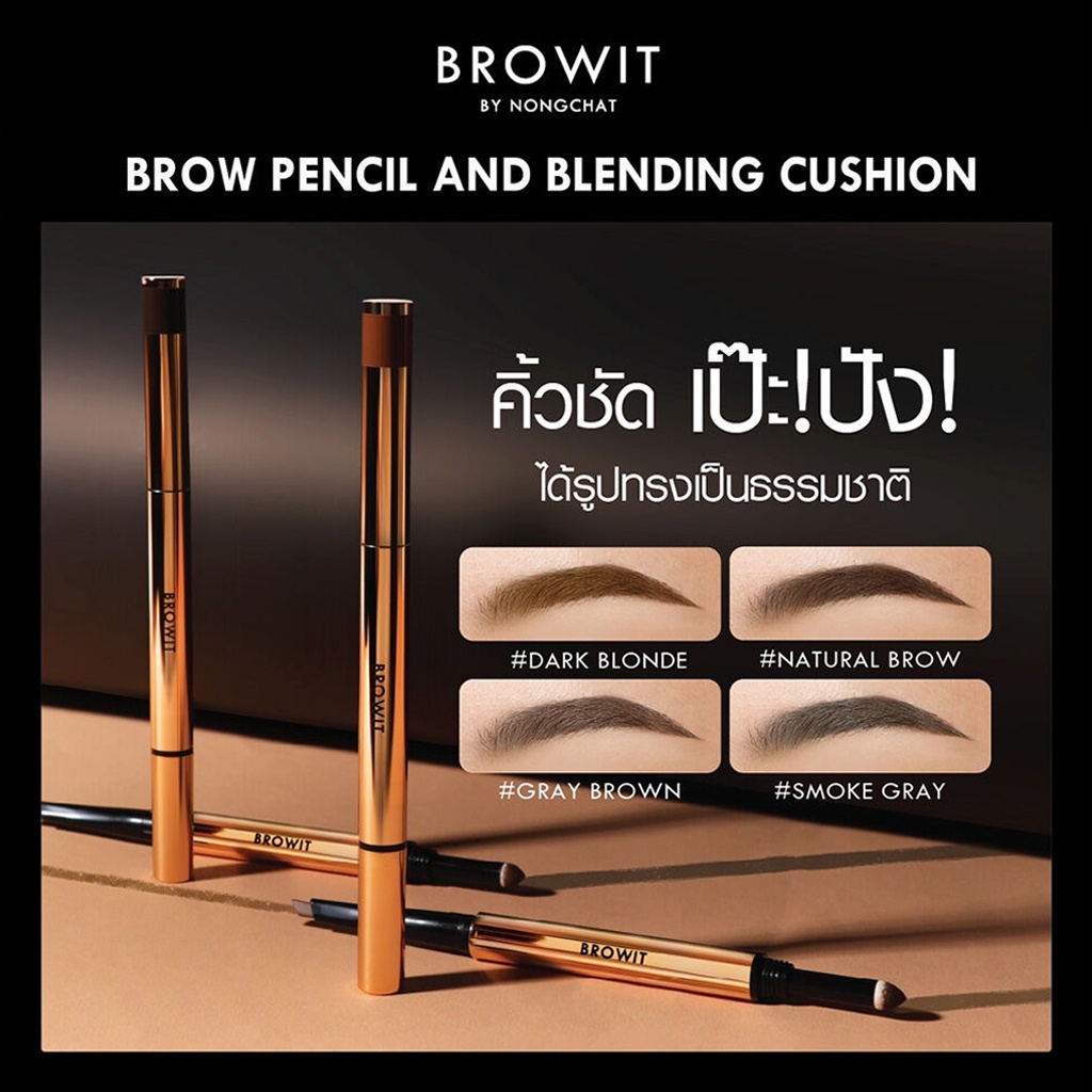ดินสอเขียนคิ้ว คุชชั่นคิ้ว สำหรับเบลนดิ้ง บราวอิท น้องฉัตร Browit By NongChat Brow Pencil And Blending Cushion 2in1
