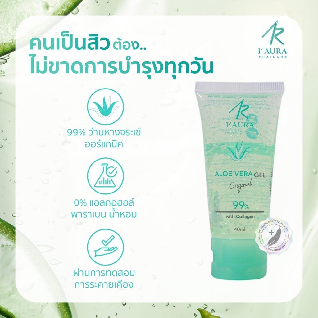 I'AURA Aloevera gel ไอออร่า เจลว่านไอออร่า เจลว่านลดสิว ว่านหางจระเข้สายพันธ์เกาหลี 40 ml.